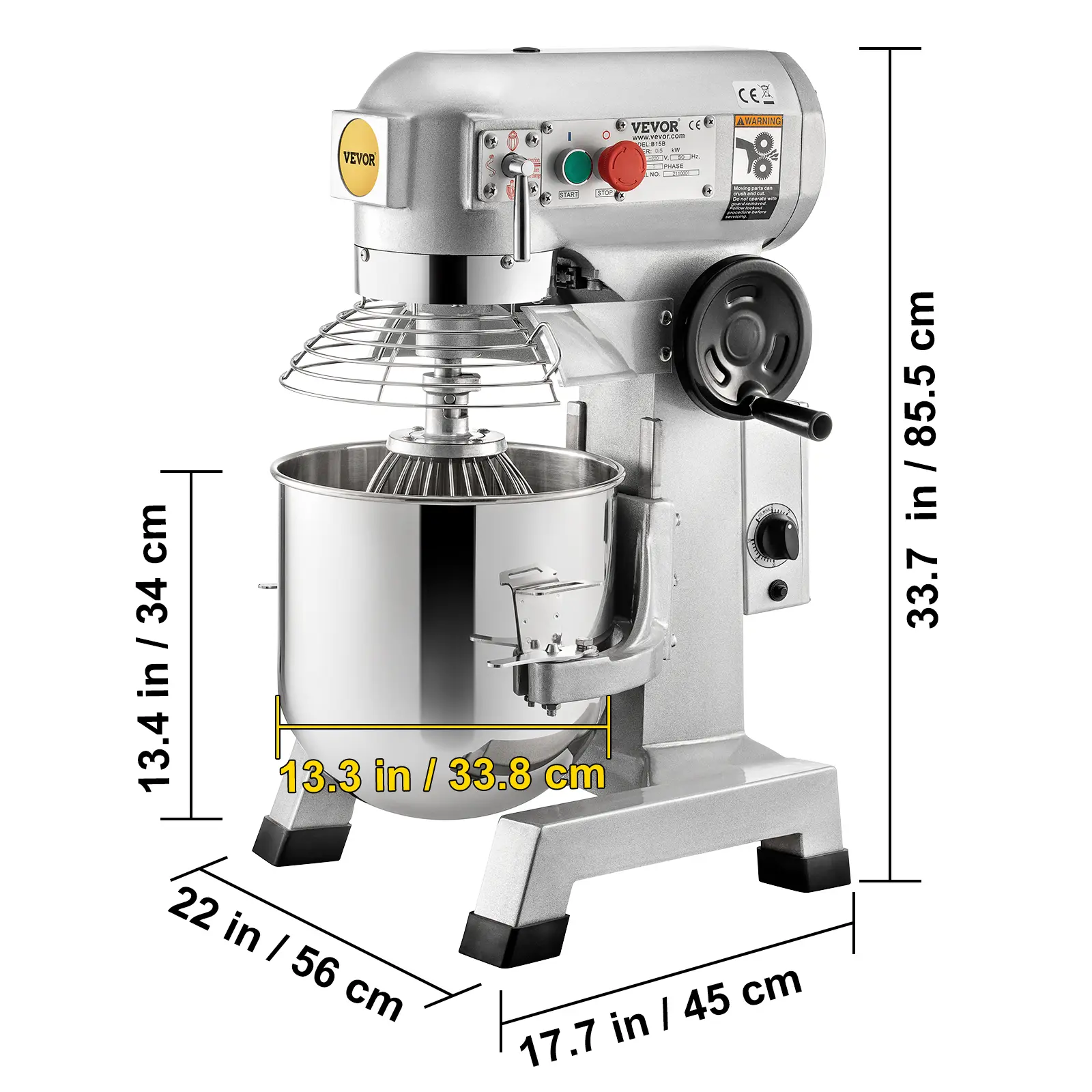• Innovative Timer Function: This mixer has an upgraded timer knob, which enables you to set up mixing time within 30 minutes. This timer function eliminates the need to keep checking the mixing process beside the machine. In addition, it adopts a turning wheel to lower or raise the bowl. With the detachable bowl & stirrer, it’s easy for you to clean. The secure shield is designed for keeping hands from injury, while the machine will automatically shut down once the shield isn't tightly closed.