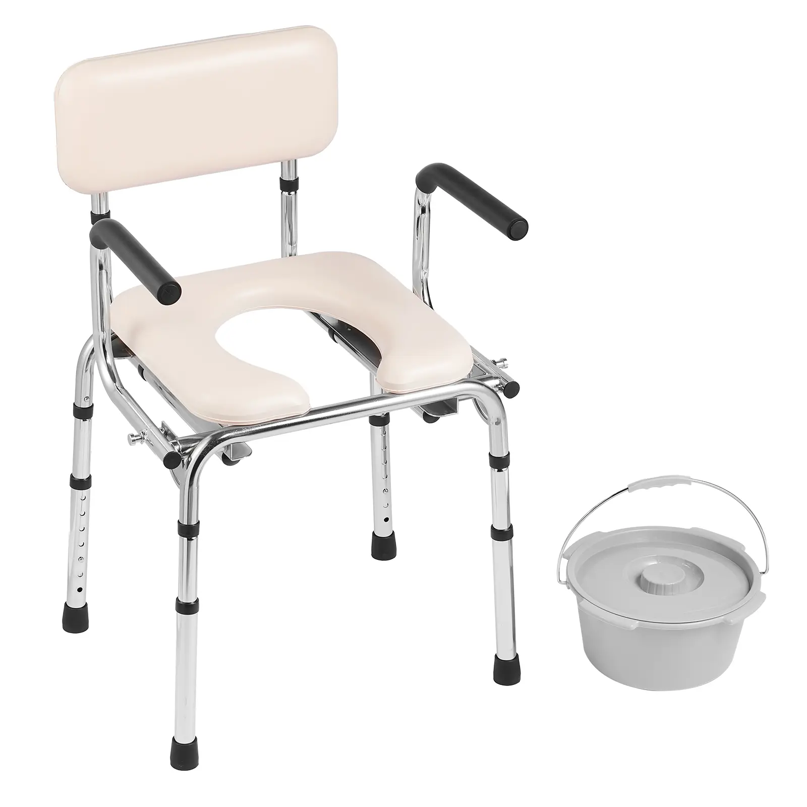 • Non-Slip Design: Equipped with non-slip rubber foot pads and handrails, this commode chair provides excellent traction and stability on bathroom tiles or bedroom floors, reducing the risk of slips. It comes with two additional foot pads for easy replacement, enhancing safety and convenience for users with limited mobility.
