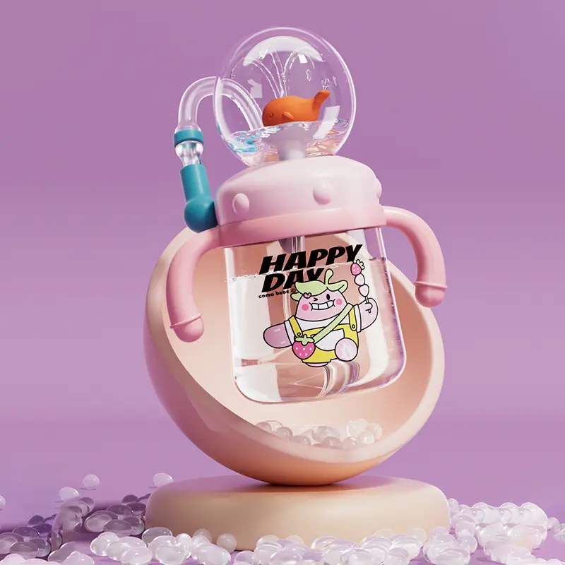 5. COMOBEBE 10oz Spill-Proof Tritan Rocket Ship & Whale Fountain Sippy Cup- BPA-Free, Hot Water Mug,Soft Straw, Fun Spray Design, Dishwasher Safe