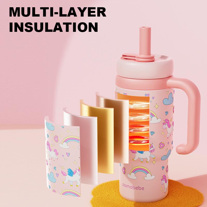 Botella térmica de acero inoxidable para niños que mantiene el agua fría por horas, con pitillo y asa fácil de agarrar. Ideal para escuela, paseos y actividades diarias. #tiktokshopjumpstartsale #tiktokshopcreatorpicks #vasoparaniños #toddlers #maternidad