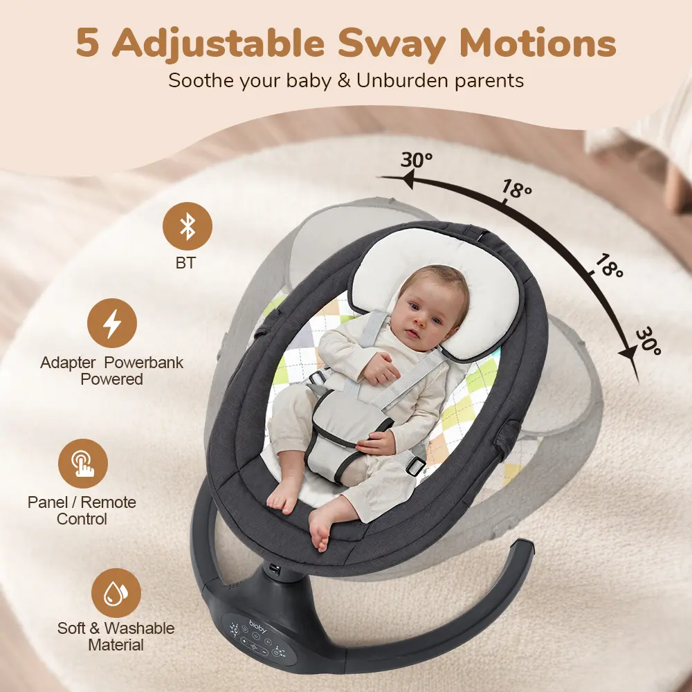 ·Adjustable Swaying: Features 5 scientific sway speeds (18, 21, 23, 25, 31) to help calm infants, supporting spine development for babies weighing 5-20 lb and aged 0-10 months.