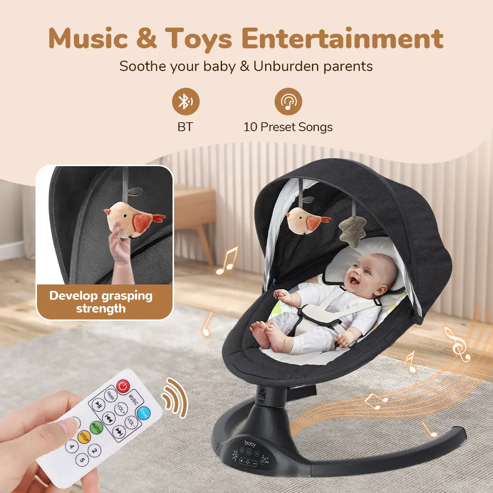 ·Smart Control: Includes Bluetooth music connectivity for playing nursery rhymes, touch key controls, and a remote control for managing motion, music, and 8-15-30 minute timing functions.