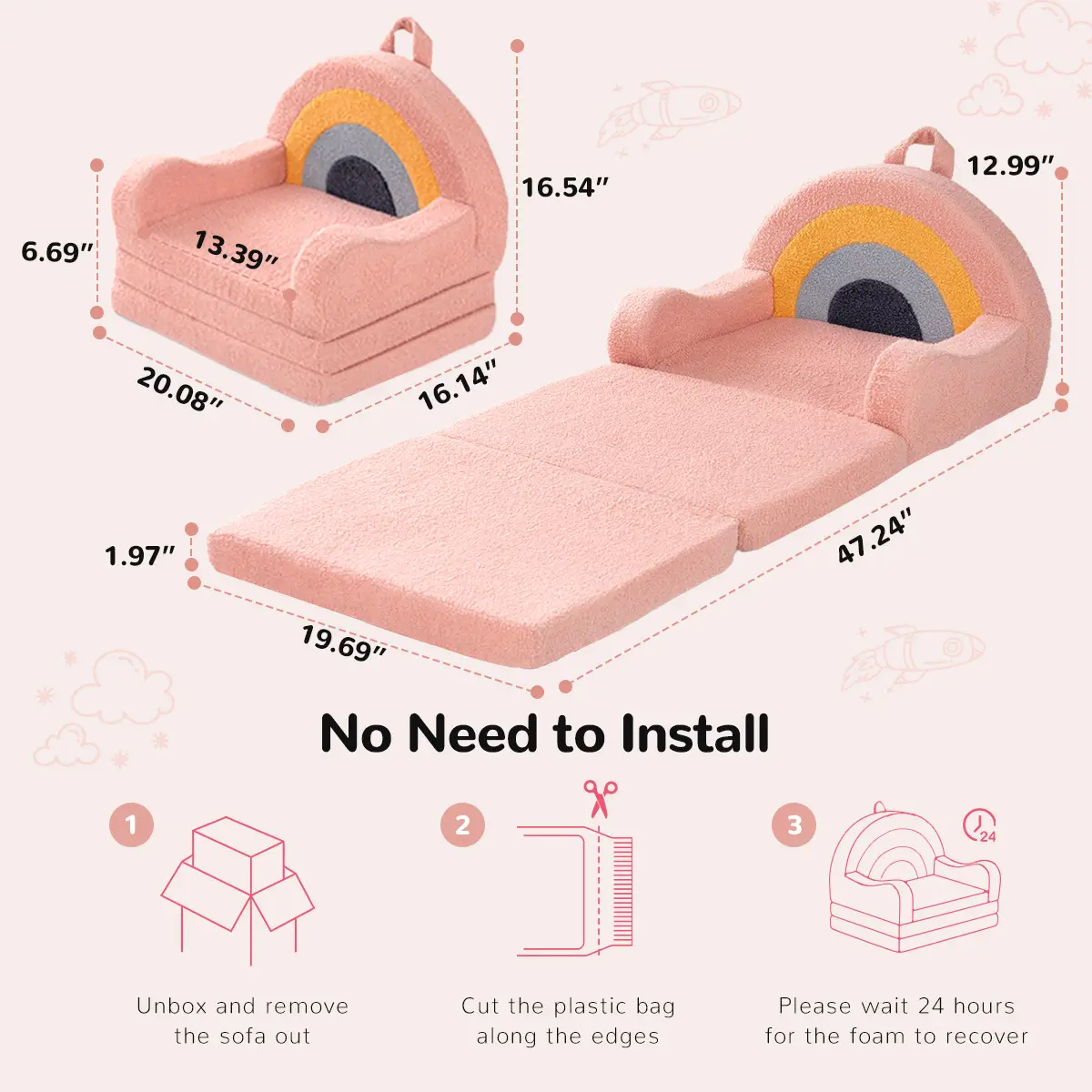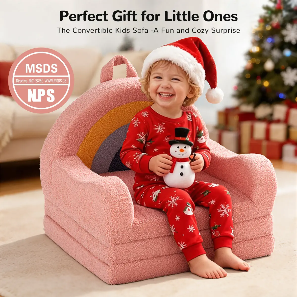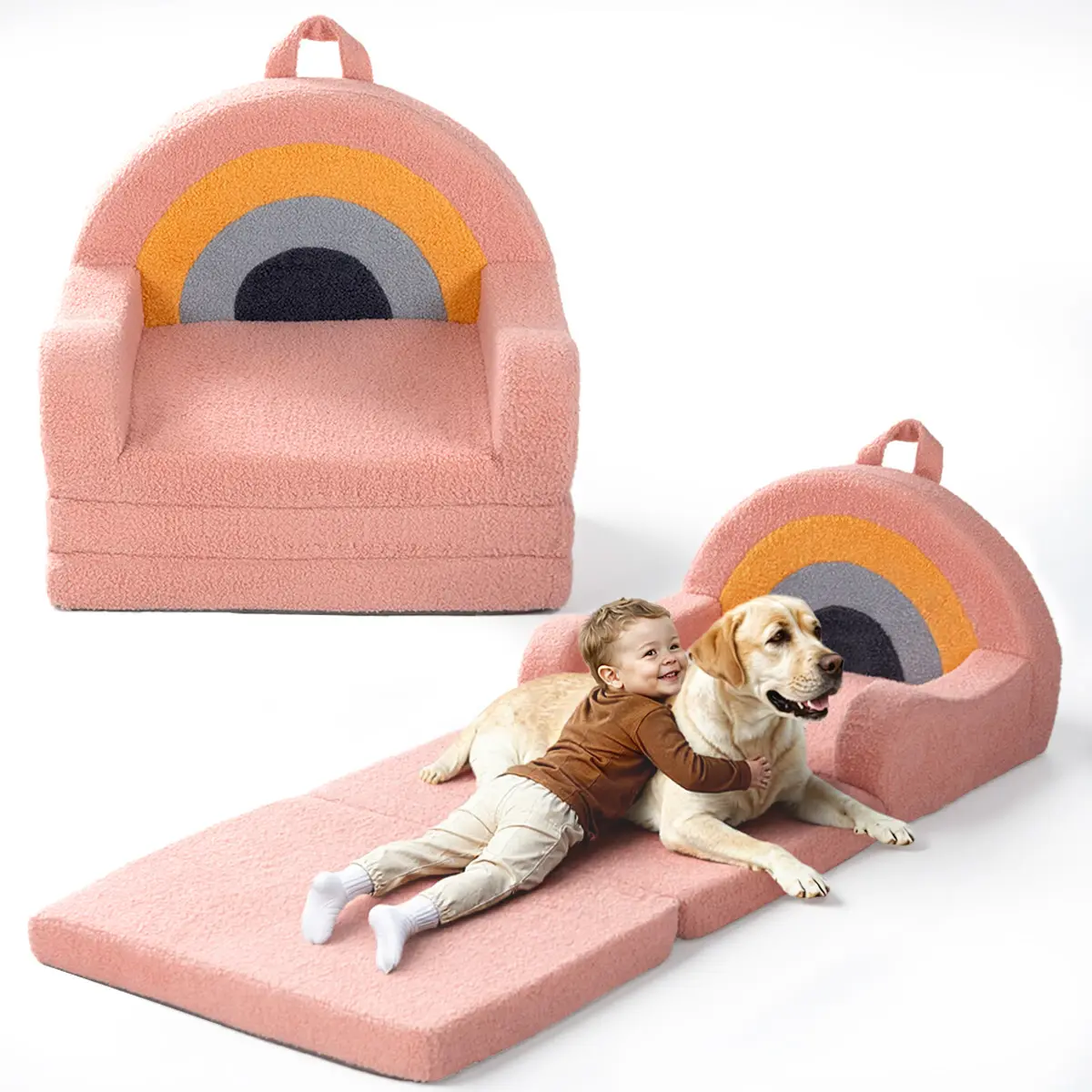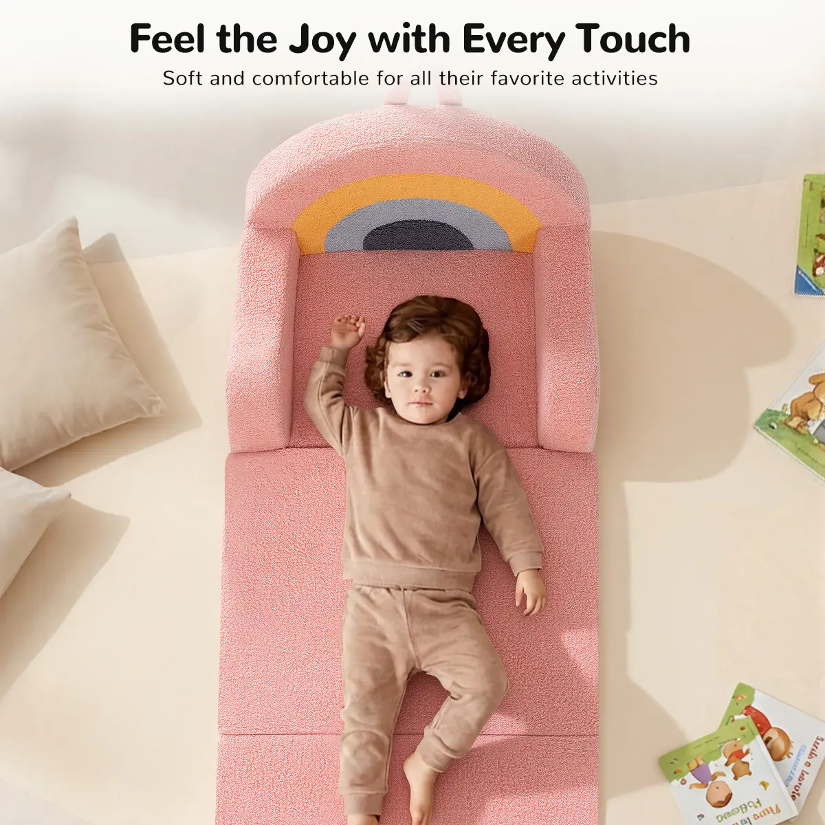 COMOMY Toddler Couch, 2 in 1 Kids Couch, Foldable Baby Soft Couch Chair for Boys and Girls Gift, Convertible Sofa to Lounger- Ideal for Napping, Reading, and Playing, Rainbow, Pink