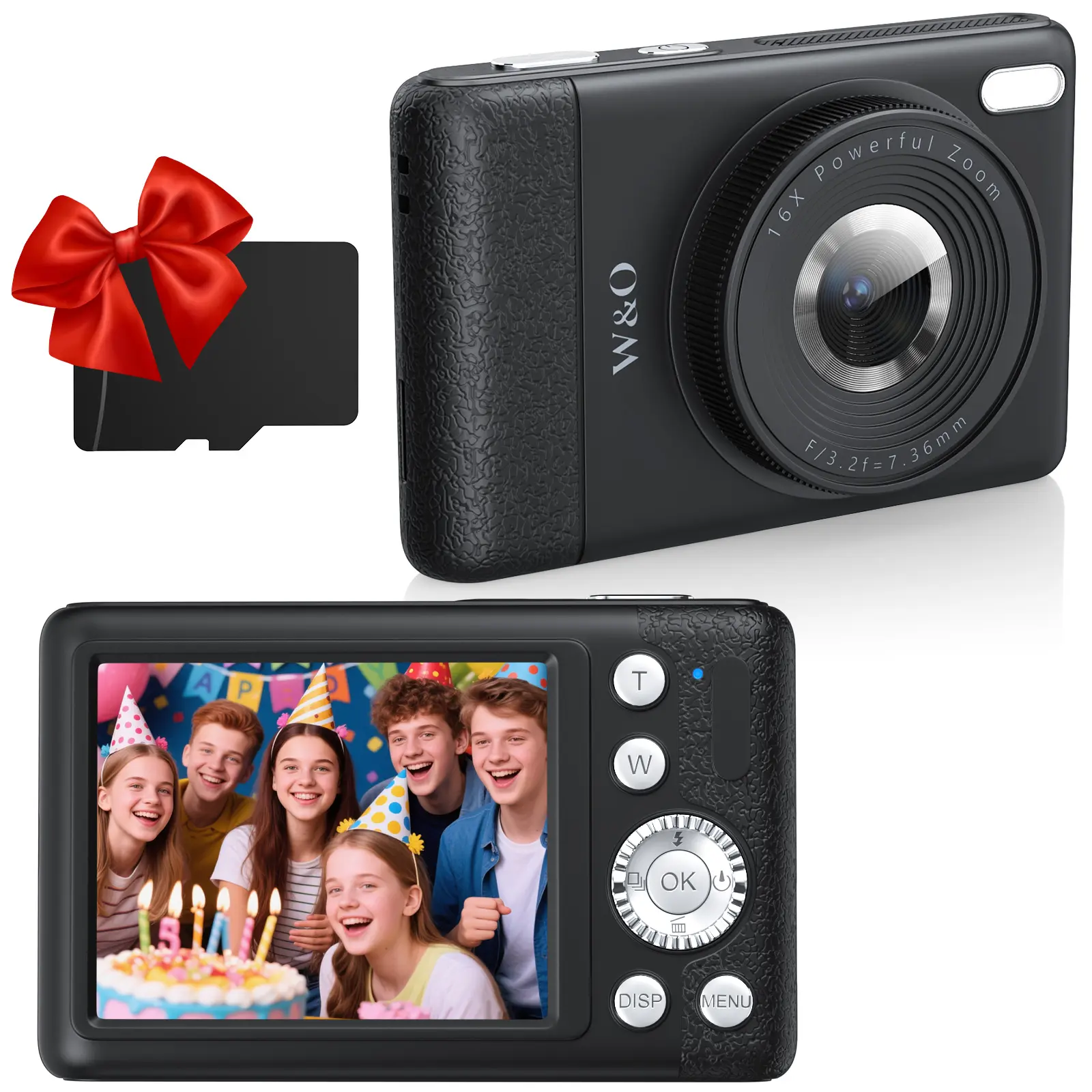 A: It's perfect for beginners! It's easy to use with an intuitive interface and clearly laid-out buttons, such as the “OK” confirmation button and the “T/W” zoom buttons, making it easy to get started. The optical zoom covers everyday shooting scenarios, from close-up selfies to distant landscapes, and the 32GB memory card can store plenty of photos, so beginners don't have to worry about storage issues. They can focus on practicing composition and capturing life, making it easy to embark on their photography journey.