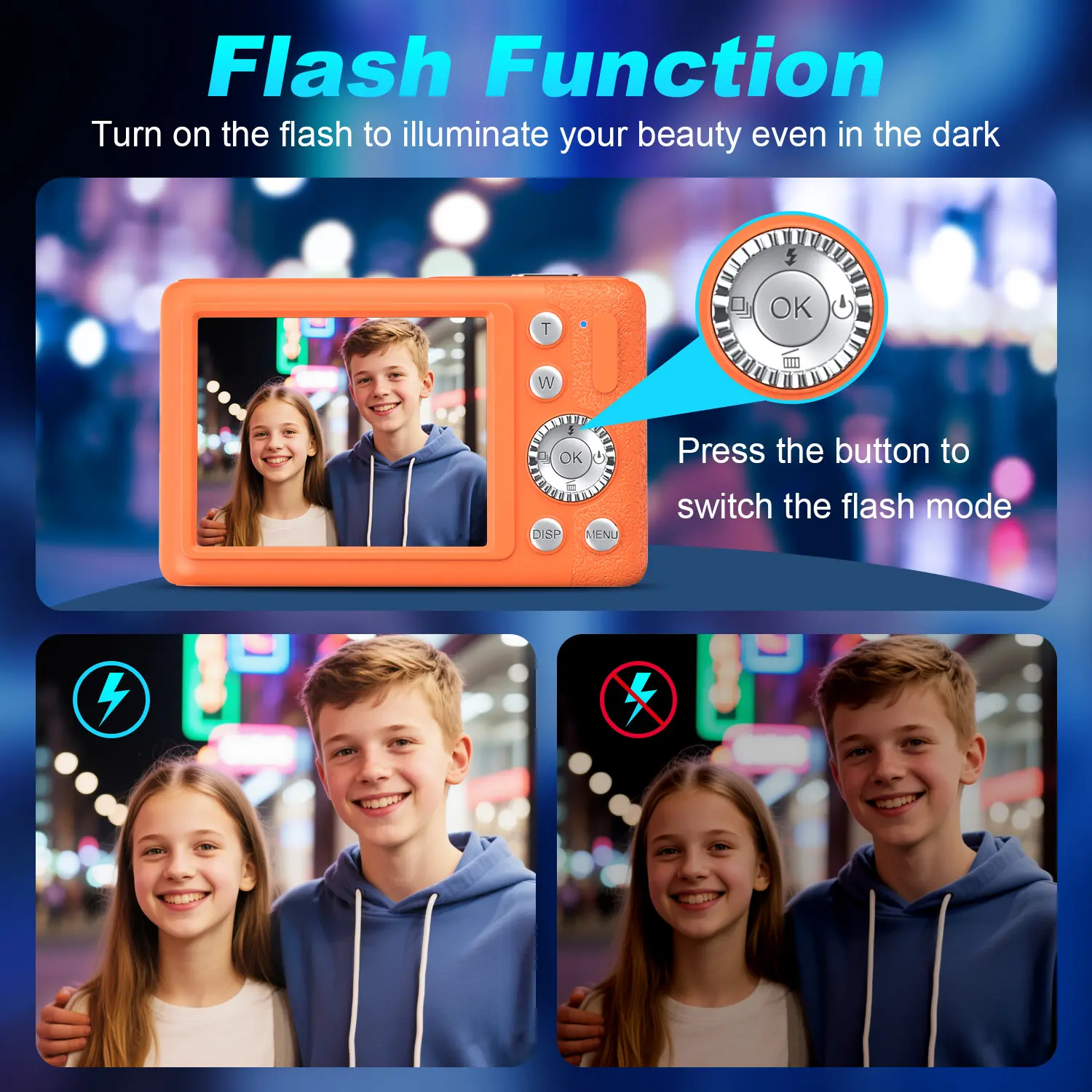 This portable camera (weighing just 0.23 pounds!) lets you keep shooting during your adventures. The 4K digital camera features a one-touch flash function, making low-light photography simple—no complicated settings required! Ideal for photography and vlogging, the camera also includes image stabilization to ensure every photo is clear and steady, whether capturing family moments or action scenes. This 4K digital camera is the perfect choice for vacations, vlogging, or everyday memories.