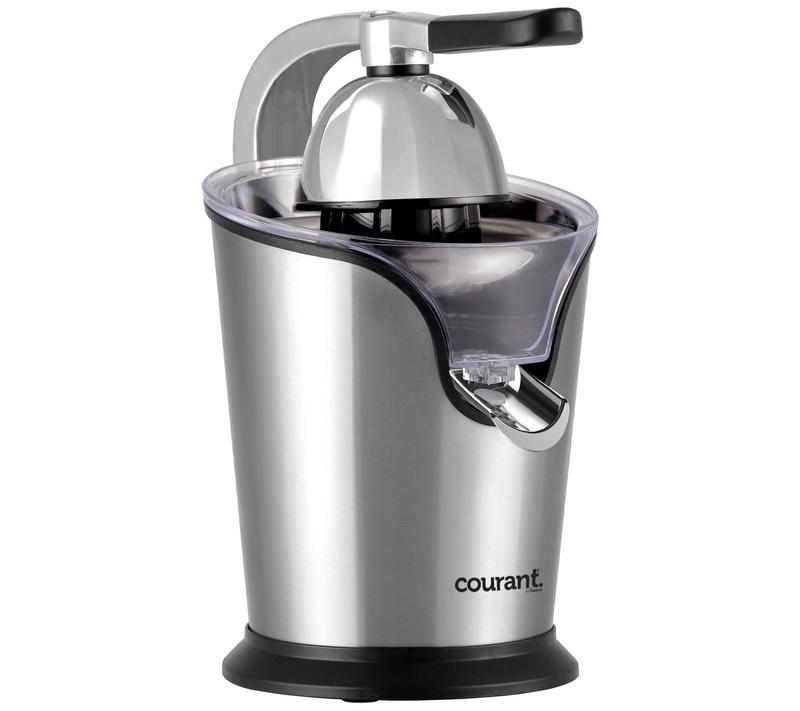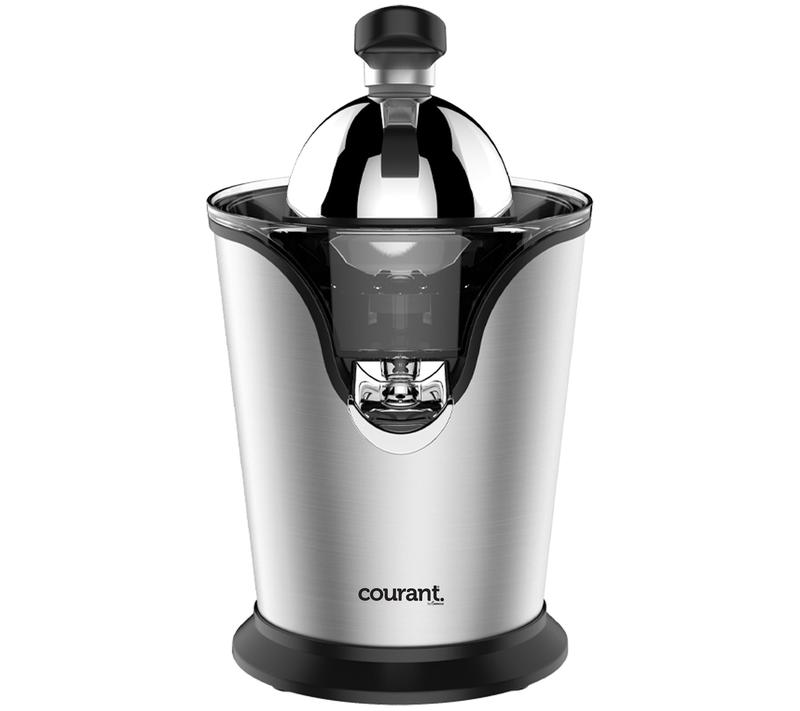 Enjoy fresh citrus juice effortlessly with the Courant compact citrus juicer. Simply press down on the fruit, and the automatic juicing system extracts every drop swiftly. Its durable stainless steel housing adds a sleek, modern touch to any kitchen while delivering long-lasting performance. Plus, the built-in cord storage keeps your countertop neat when not in use. From Courant.