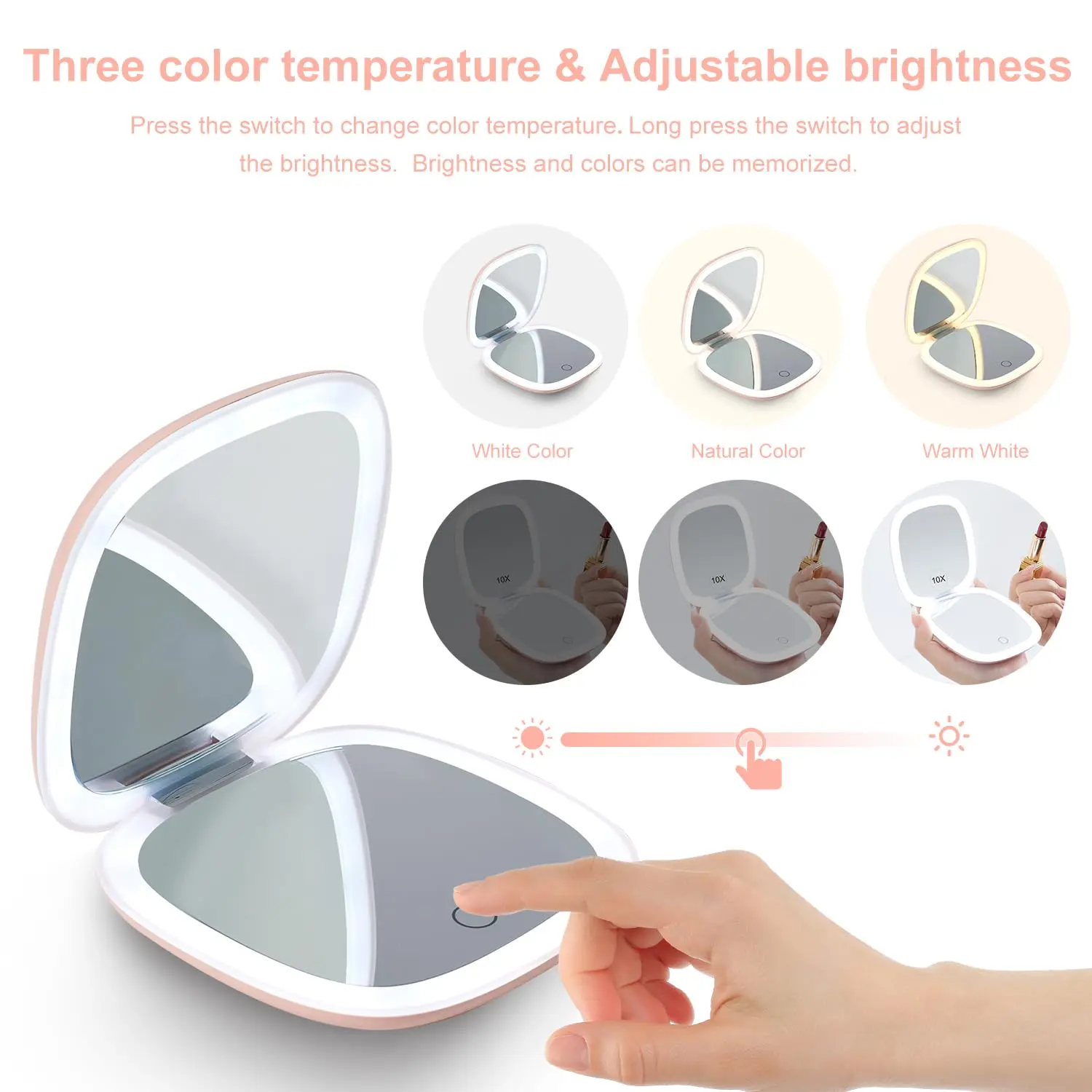 1x and 10x Magnifying - The magnifying mirror with light suitable for the entire face makeup when do a quick touch-up on the go or focus on a detailed task like tweezing and inserting contact lenses. Touch screen side is10x magnifying.