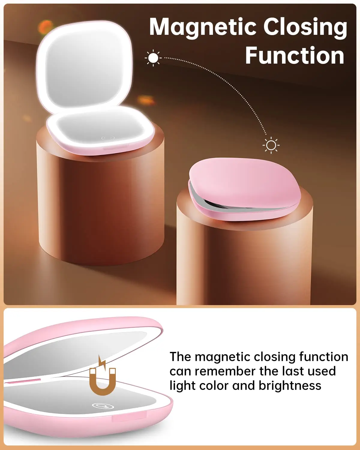 【Easy to Use】Hinge that opens flat to 180 degrees for an easy to grip handheld, and it has two hidden magnetic power swtich that control LED lighting.
