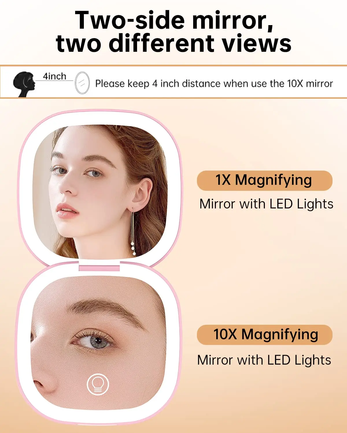 【Magnifying Mirror with Light】The 1X mirror equipped with 8 daylight LEDs,It can show your face more clearly, even in dim environment, with the help of LED lights,you can better finish your makeup ! 3X magnification is great for close up detail work such as applying eye makeup.