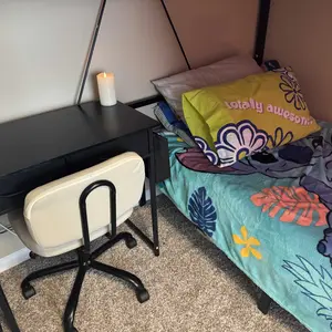 It goes very well with the theme of my room and it’s the perfect fit! I love it 😍. I purchased it to be my new vanity/school chair.