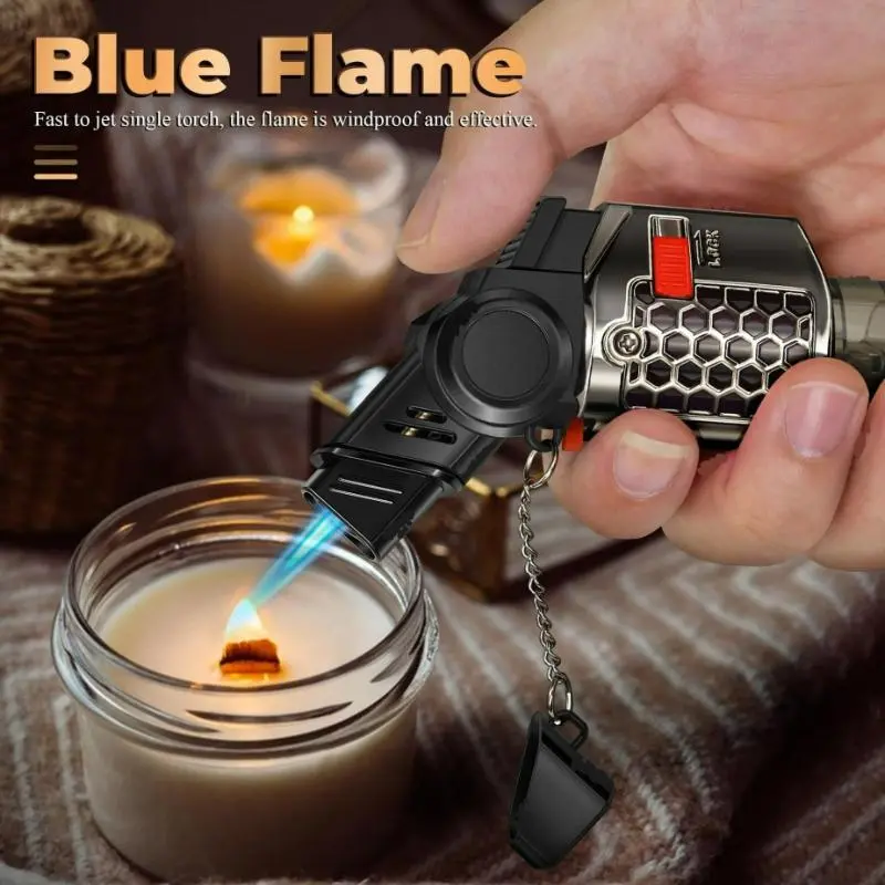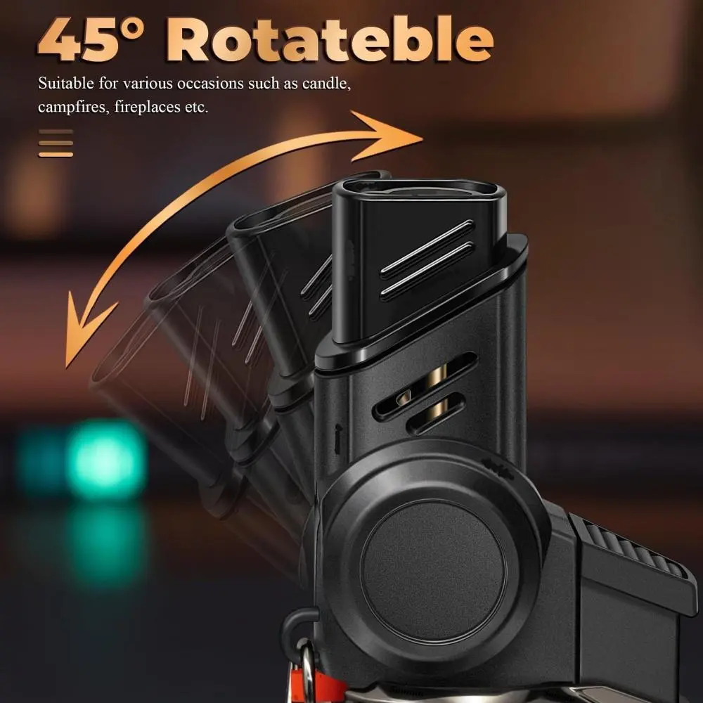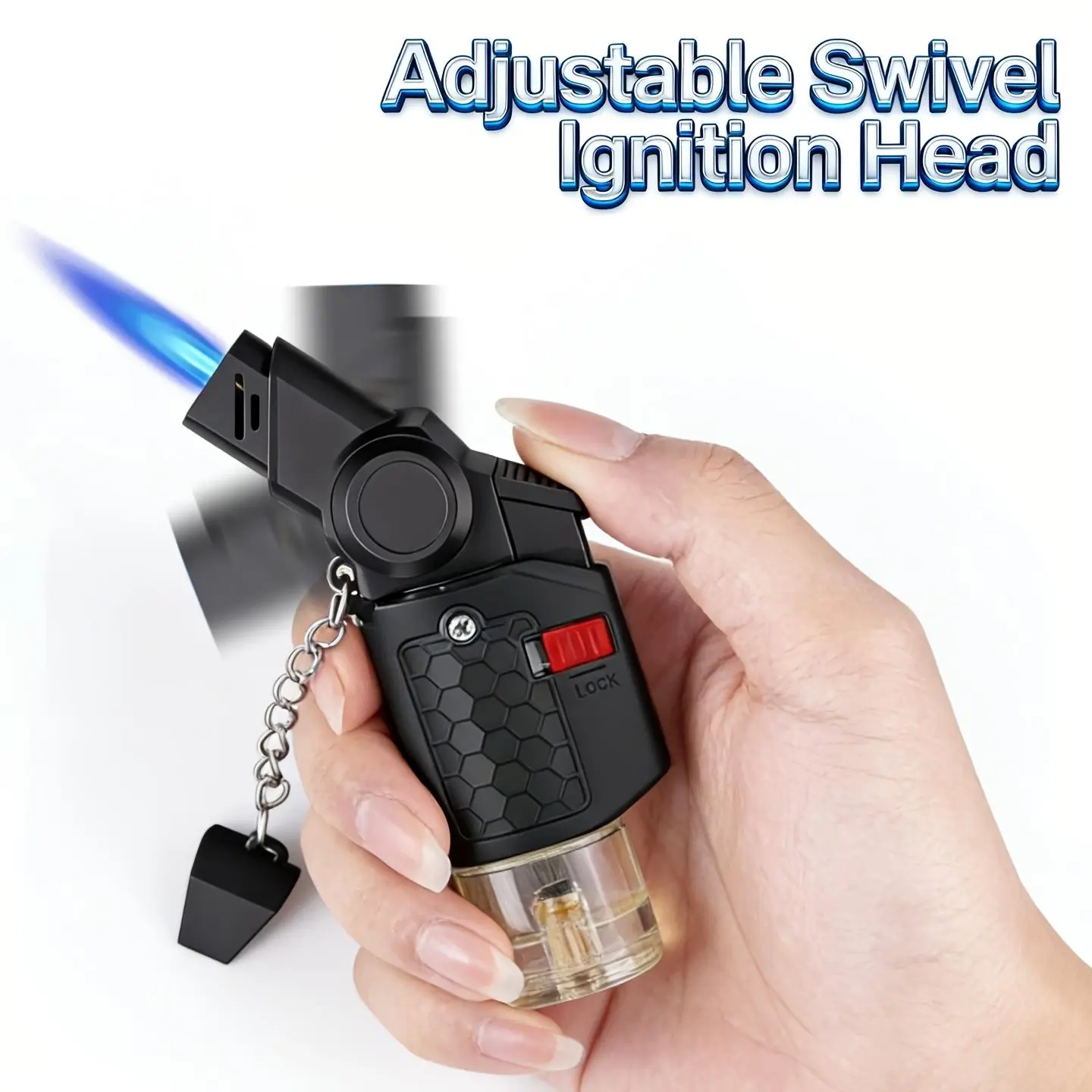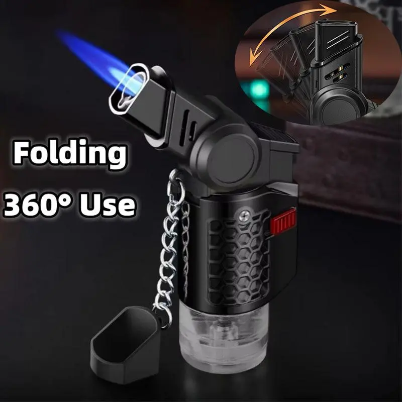 Compact Windproof Butane Torch Lighter with 15° & 45° Adjustable Swivel Ignition Head, Foldable Portable Design, Transparent Gas Tank with Safety Lock, Powerful Outdoor Welding Gun Lighter, Ideal Gift for Men (Butane Gas Not Included)