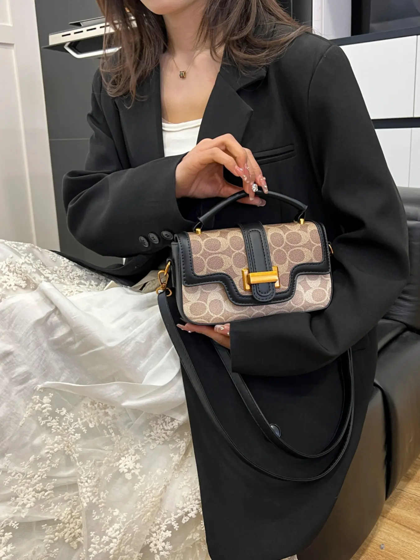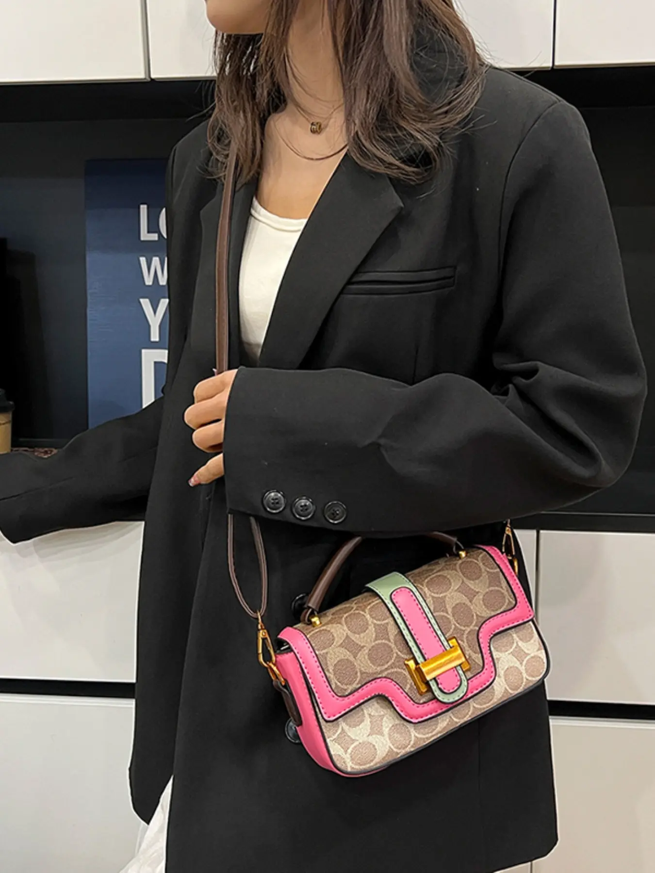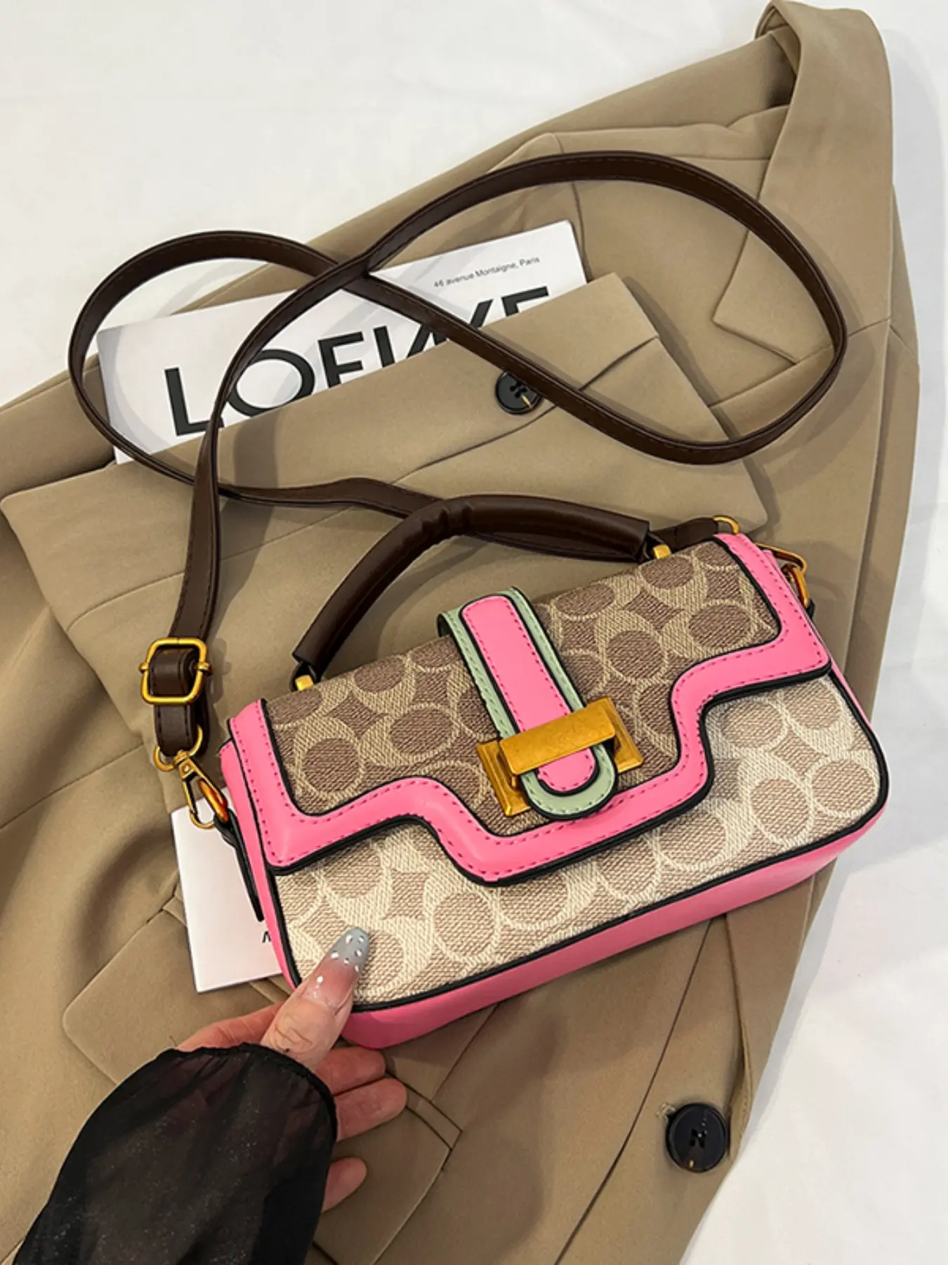 Compact Yet Spacious Bag, Short Handle & Adjustable Straps, Perfect for Commuting/date/walking, Leather Patchwork & Metal Buckle, Versatile Color