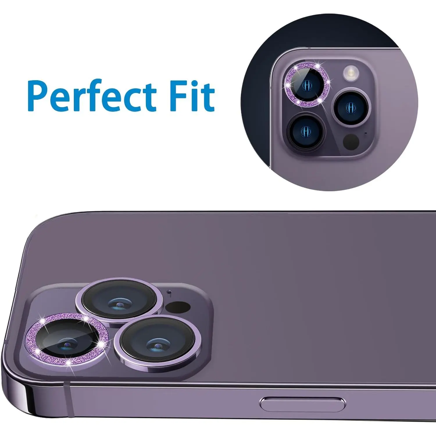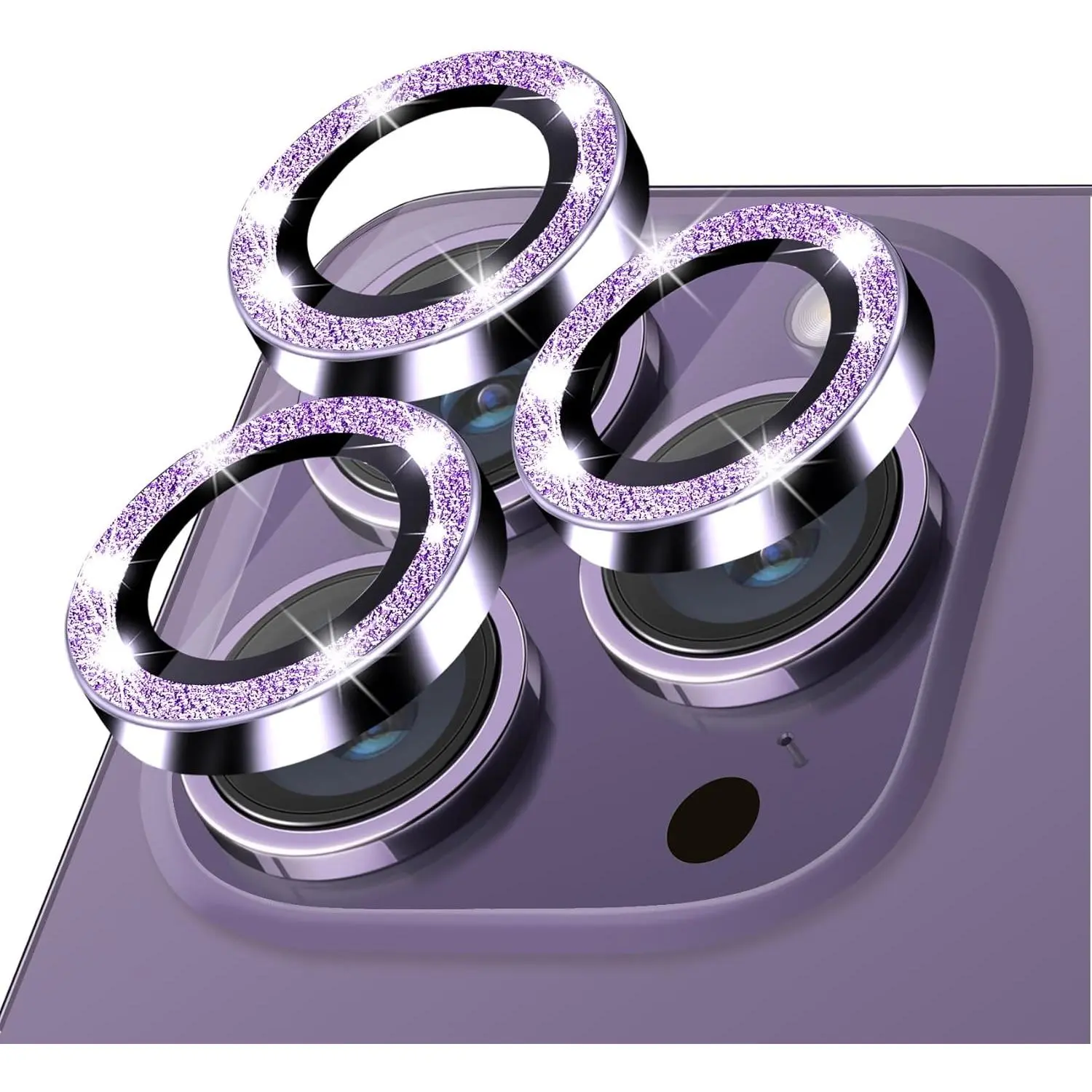 Compatible with 14 Pro and 14 Pro Max Camera Lens Protector, Bling Glitter Lens Cover 9H Tempered Glass Camera Cover Anti Scratch Lens Screen Protector - 3 count Deep Purple