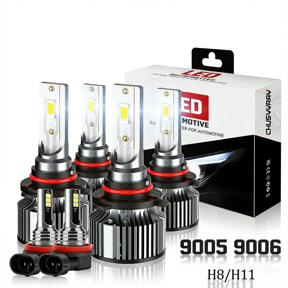Complete LED Headlight Conversion Set 4PCS/6PCS Combos 1:1 Mini Design 300% More Light Plug-and-Play DIY Fits Most Cars Trucks & SUVs AllWeatherLED UniversalFit