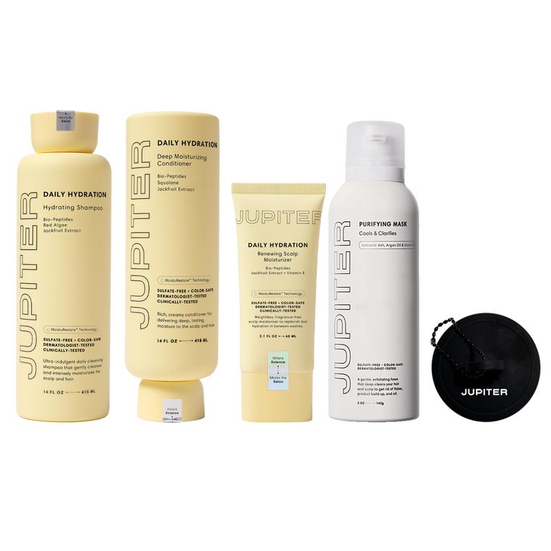 Treat yourself to the ultimate moisture makeover with the Complete Moisture Reset. Powered by MoistuRestore Technology, this luxurious set—including our Hydrating Shampoo, Deep Moisturizing Conditioner, Renewing Scalp Moisturizer (fragrance-free), Purifying Mask, and Scalp Brush—is designed to pamper your scalp and hair, delivering deep hydration, gentle exfoliation, and a beautiful, healthy glow.