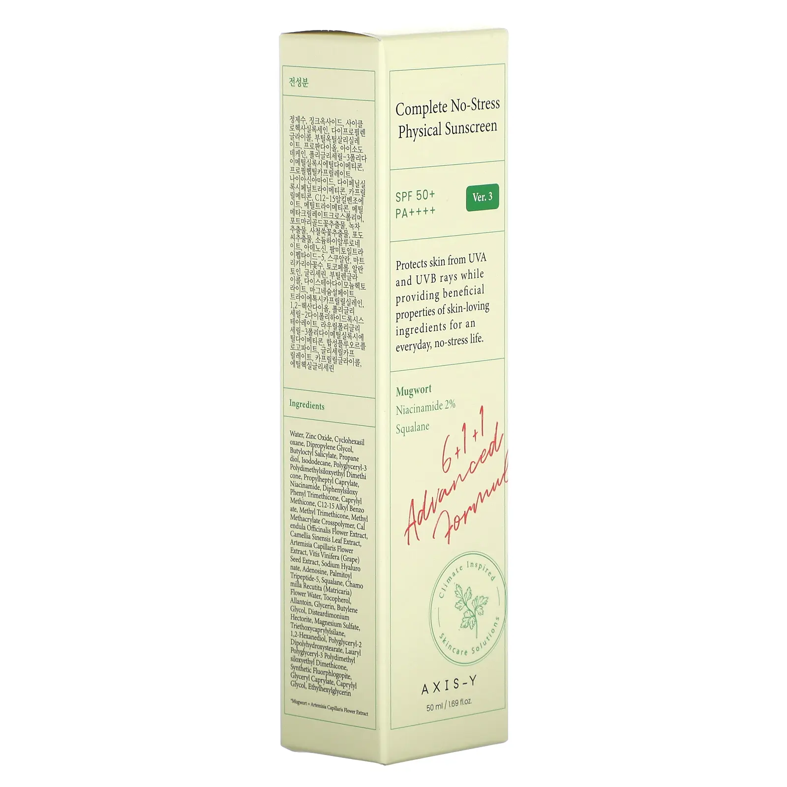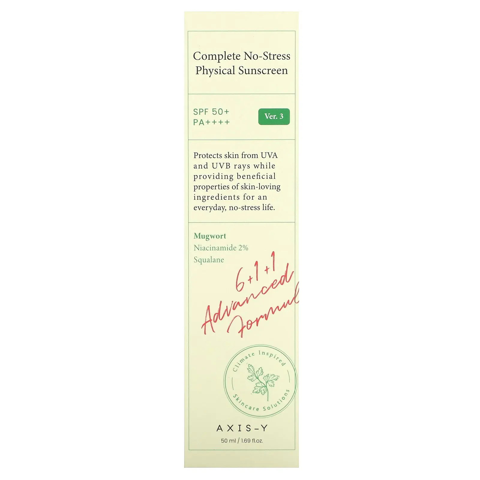 Axis-Y Complete No-Stress Physical Sunscreen, SPF 50+, PA++++, Version 3, 1.69 fl oz (50 ml)