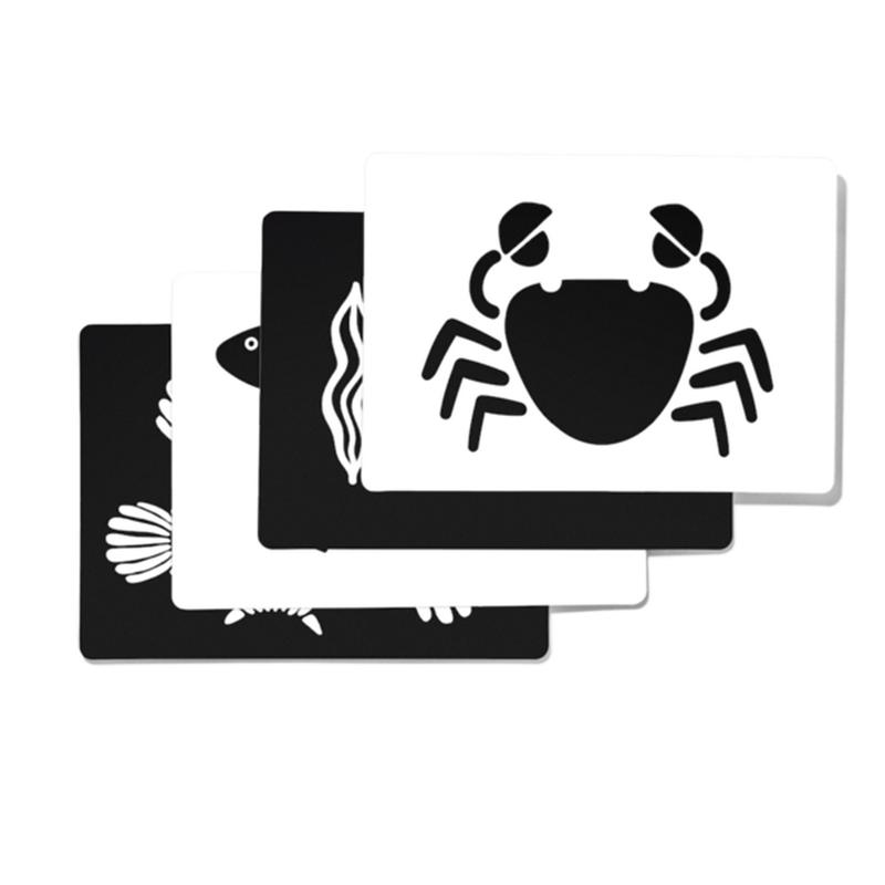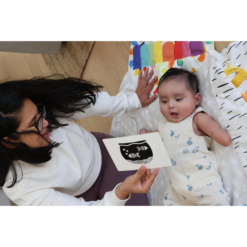 High-contrast images with varying pattern complexity help develop and strengthen your baby's eyesight, while playful themes provide fun ways to build their vocabulary. These black and white cards are perfect on the go or as expansion sets to your favorite Lovevery playthings with cardholders.