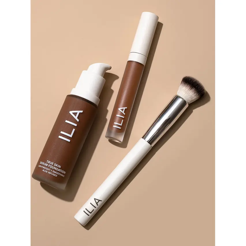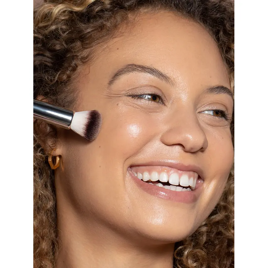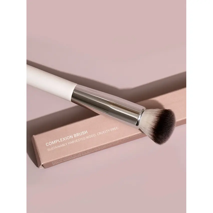 Our Complexion Brush is designed to easily apply and buff product into the skin, including hard to reach places. The sustainably harvested wood handle is complemented by soft bristles that are made of synthetic, man-made fiber.