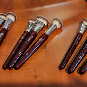 I am beyond impressed with these brushes. The bristles are "sturdy" and soft and don't shed at all, even after the first wash. They pick up pigment beautifully and blend out harsh lines with almost no effort. The handles feel sturdy and weighted, not like cheap plastic. If you’re looking for a seamless finish for your foundation, blush, or bronzer, these are a game changer. Worth every penny!