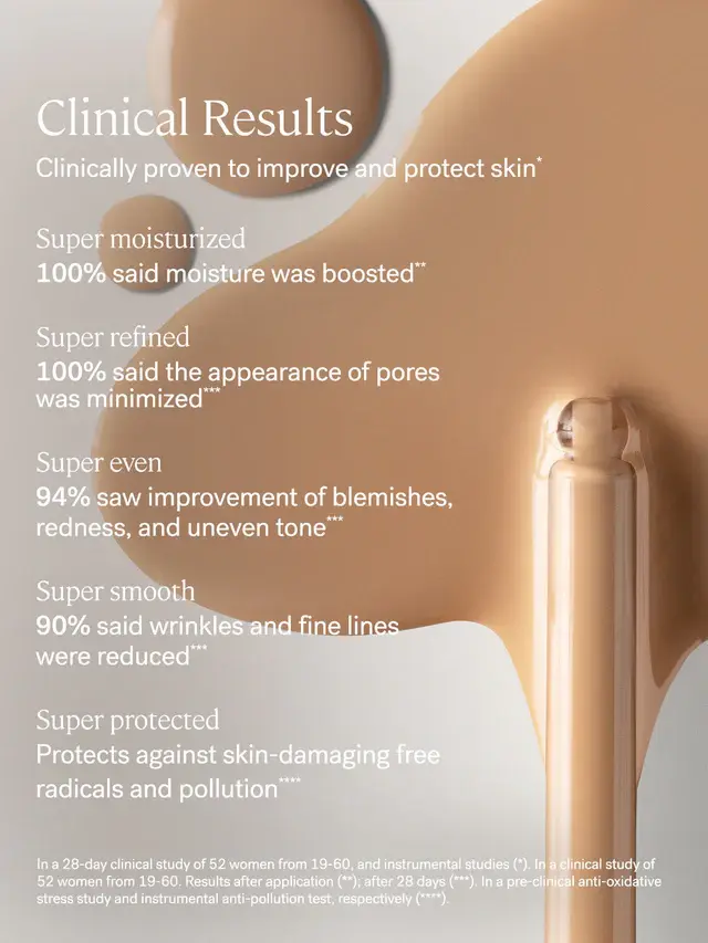 ·Super Serum Skin Tint SPF 40 is our award-winning Skin Tint that delivers light coverage, potent skincare, and mineral SPF—all with a dewy finish for skin that looks and feels alive. Powered by potent levels of skincare ingredients, it’s clinically proven to improve the look of dryness, blemishes, redness, wrinkles, and uneven tone over time for breathable, buildable coverage that evens tone without hiding your skin.
