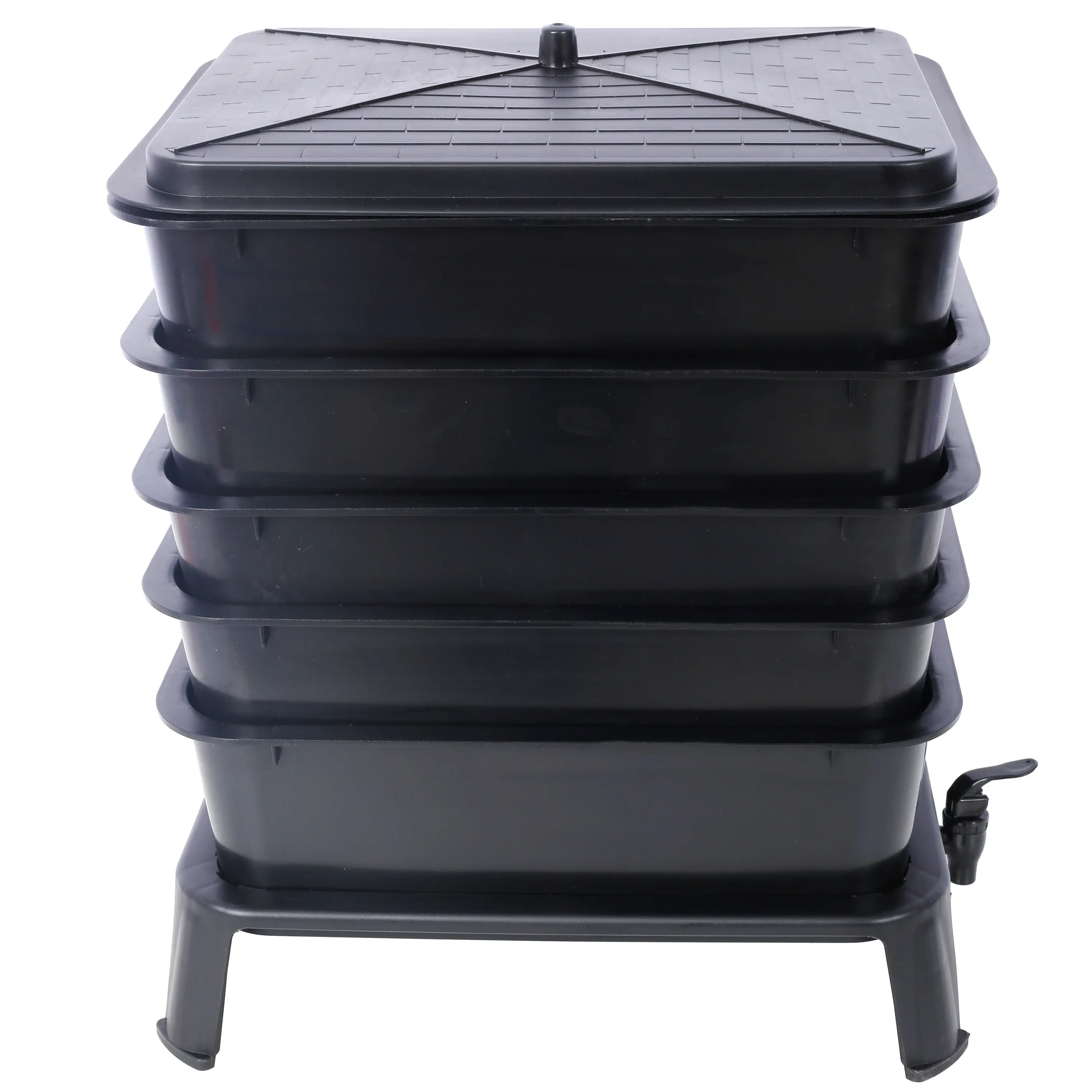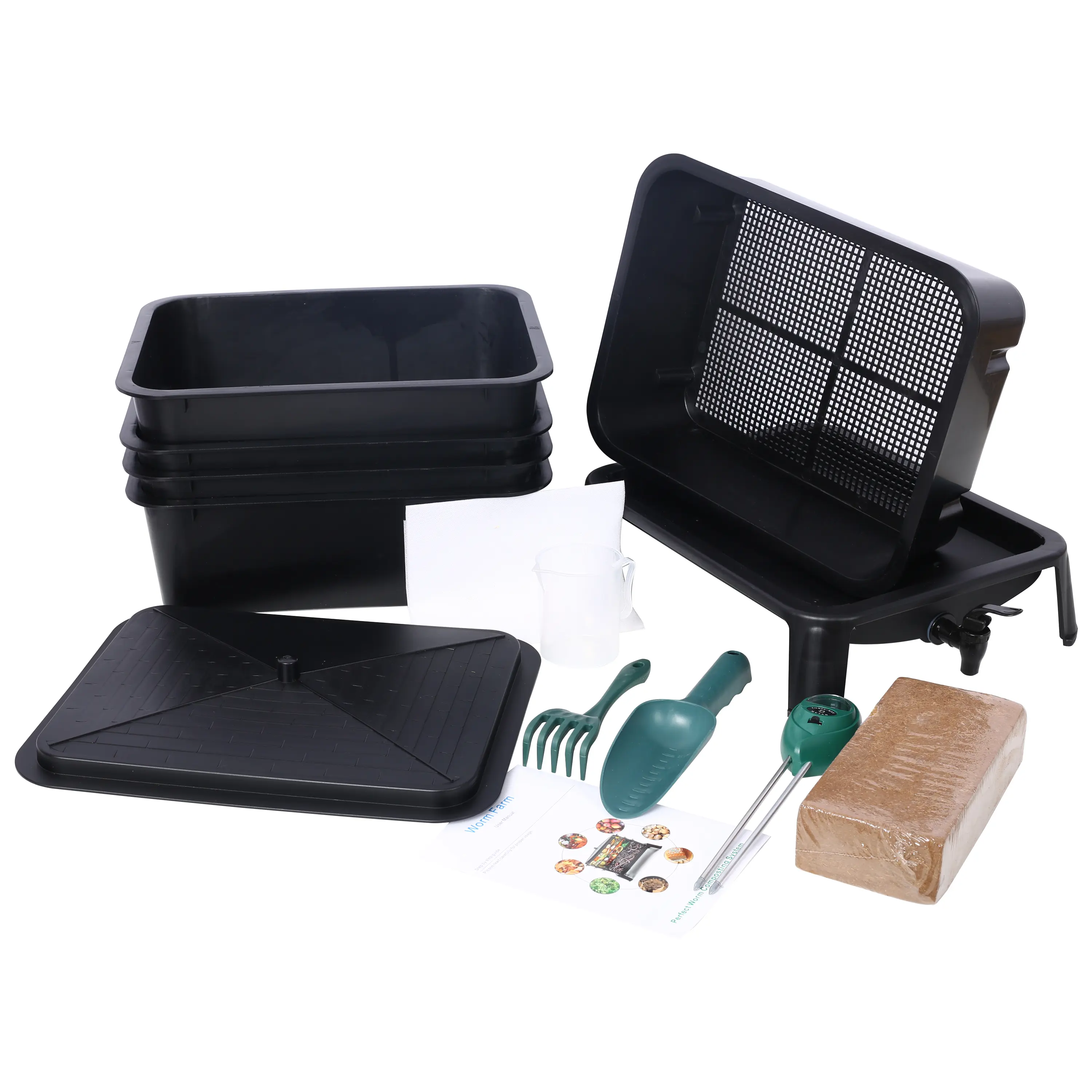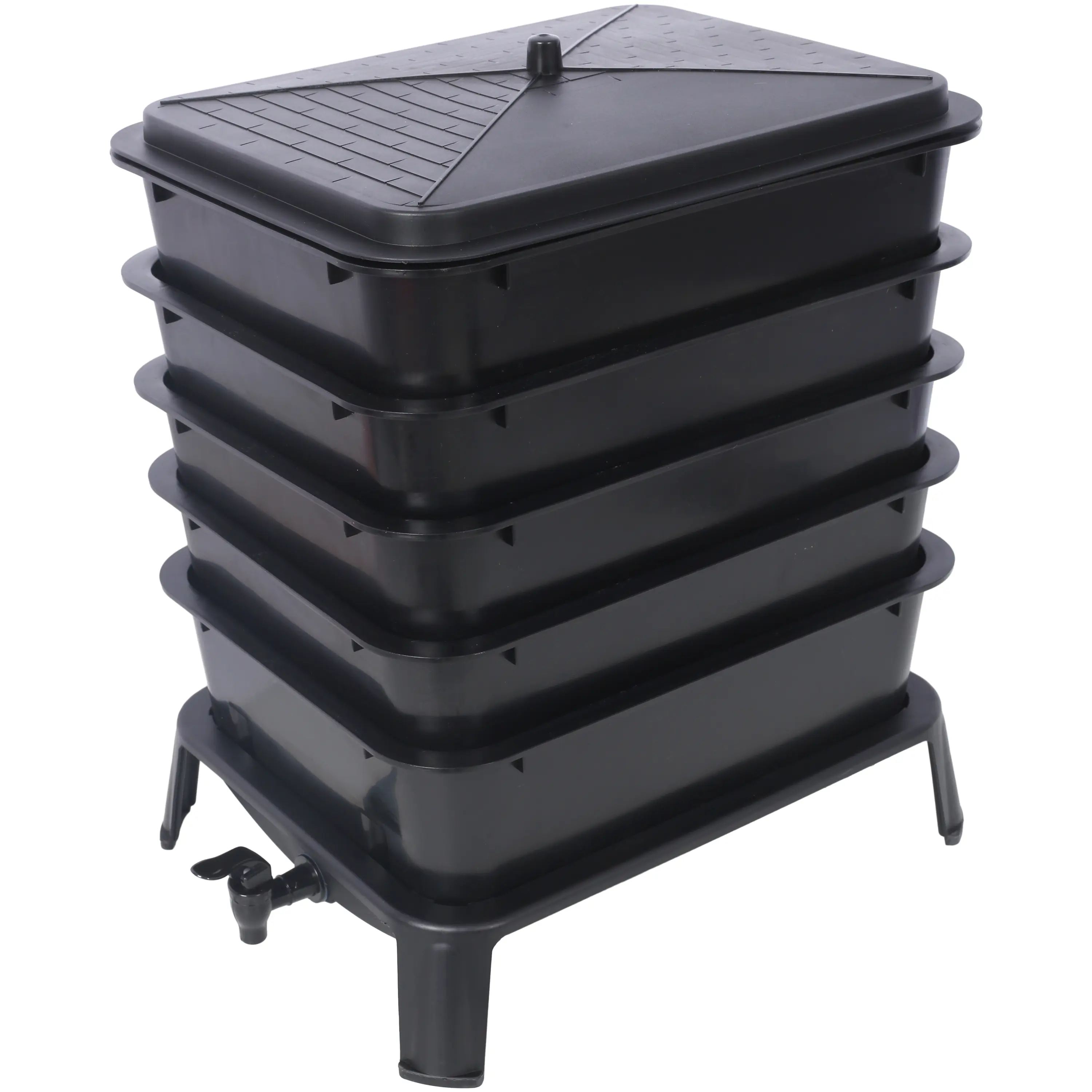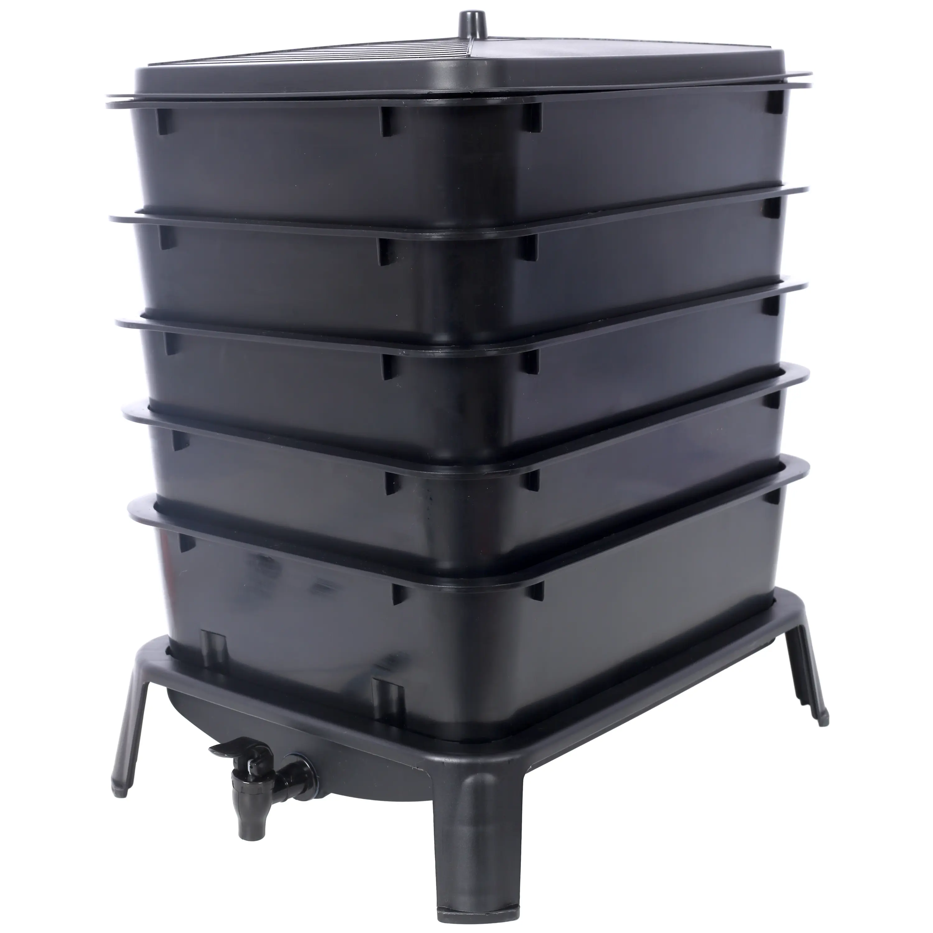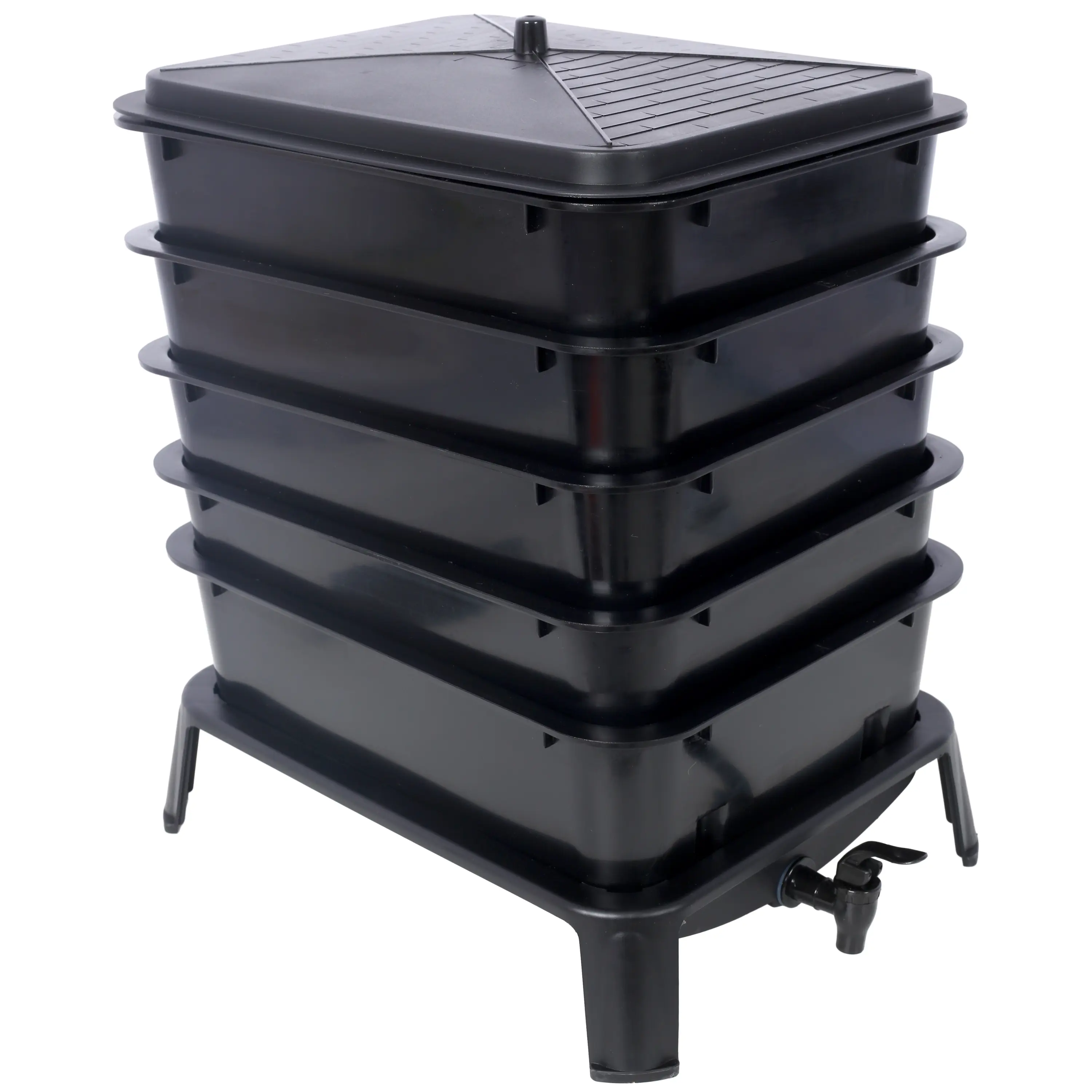 EFFICIENT VERMICOMPOSTING: Harness the natural power of worms to accelerate decomposition and produce nutrient-rich compost. This eco-friendly solution promotes thriving gardens while supporting sustainable living.LARGE CAPACITY IN A COMPACT DESIGN: Made from durable PP plastic, this multi-layer compost bin has a capacity of up to 50L (13 Gal). The stackable trays allow for efficient separation of materials, while the space-saving design fits seamlessly in kitchens, balconies, or gardens.EXCELLENT AERATION & ODOR CONTROL: Thoughtfully designed ventilation slits enhance airflow, ensuring optimal moisture and temperature levels for worm activity. This prevents unpleasant odors, supports worm growth, and minimizes the risk of worm escape or pest intrusion.EASY TO SET UP AND USE: Assemble in just 5 minutes with included detailed instructions. The stackable system makes adding waste and collecting compost hassle-free. A convenient spigot at the base allows for easy collection of nutrient-packed worm tea.ALL-IN-ONE STARTER KIT: Comes with 1pc soil meter,1pc coconut brick,1pc shovel,1pc rack,1pc measuring cup,1pc Non-woven Fabrics.These accessories provide everything you need to start composting efficiently and conveniently.