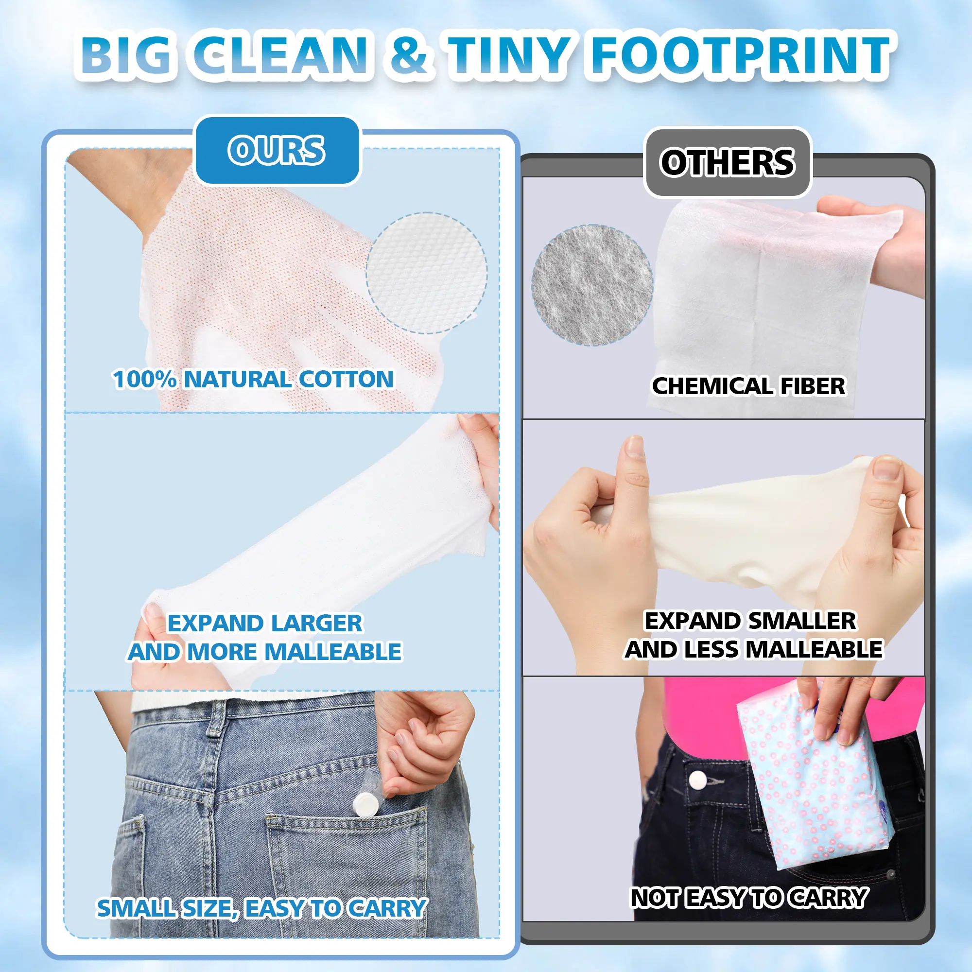 [Easy to Carry] You can put the coin tissues compressed towels into your purses, handbags, backpacks, suitcases, or cars without occupying space.