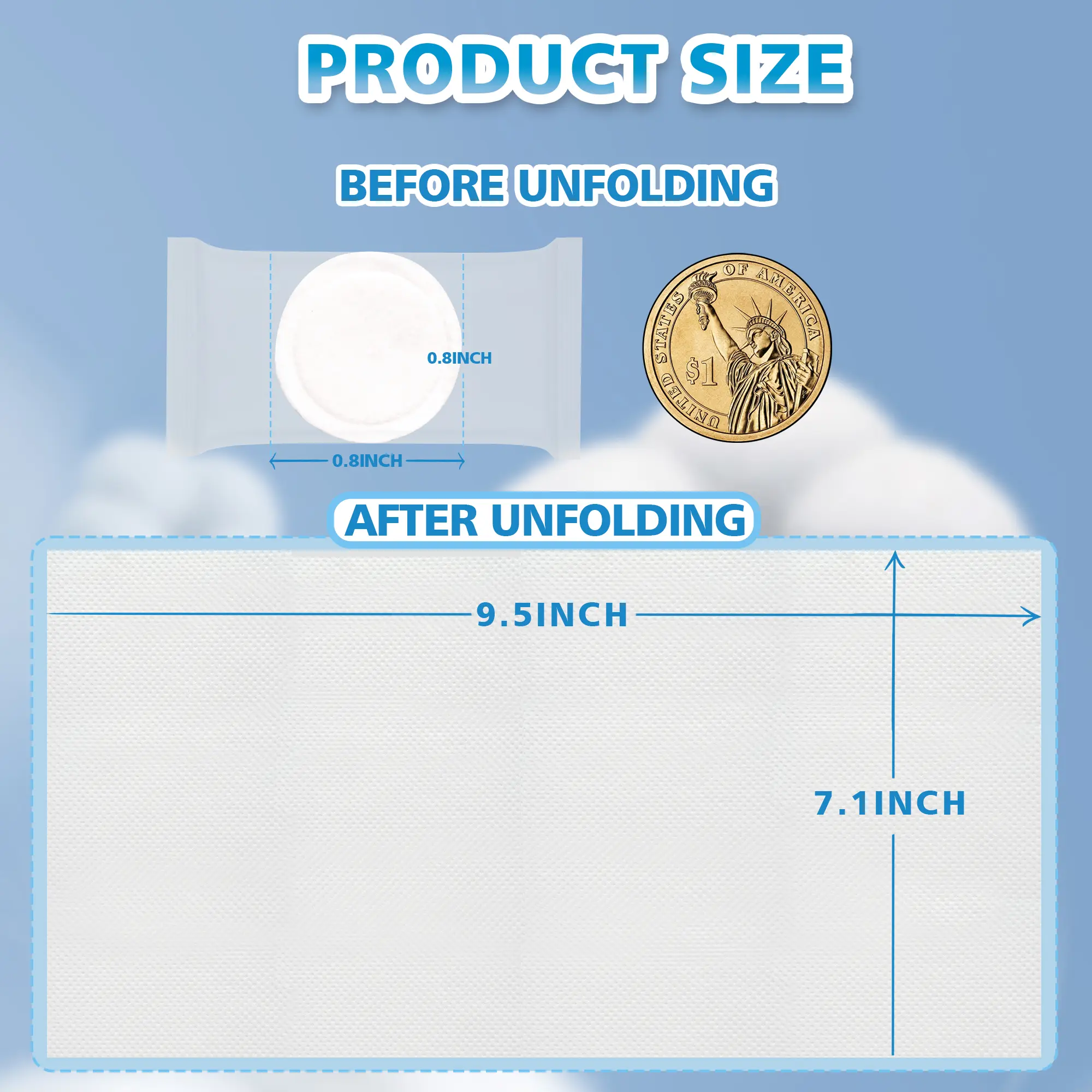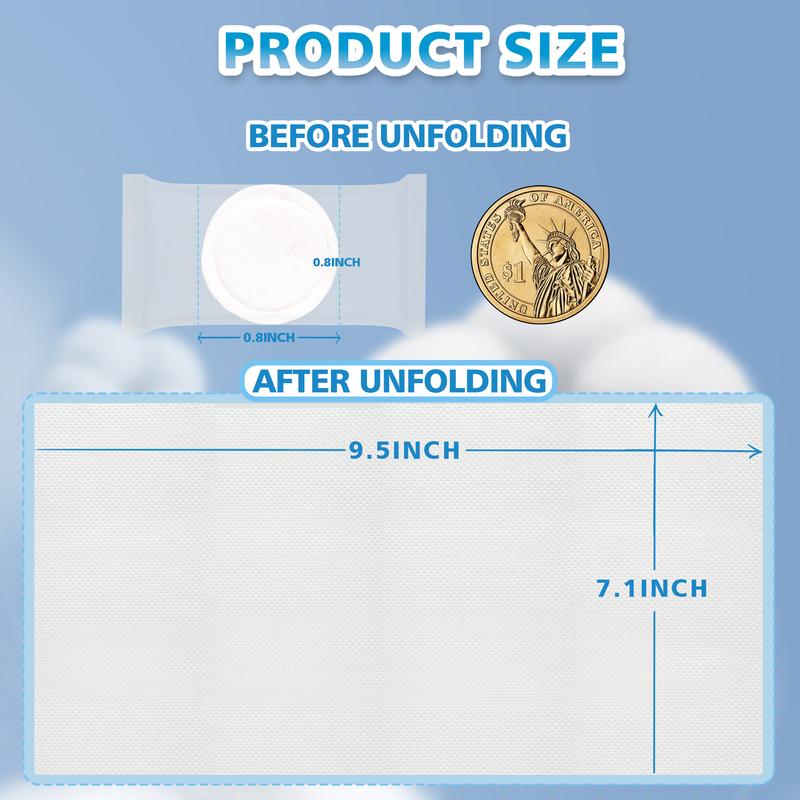[Easy to Use] Put the compressed face towels in cold or warm water for few seconds. Note: magic towel looks like a candy, inedible. Please do not be accessible to children.