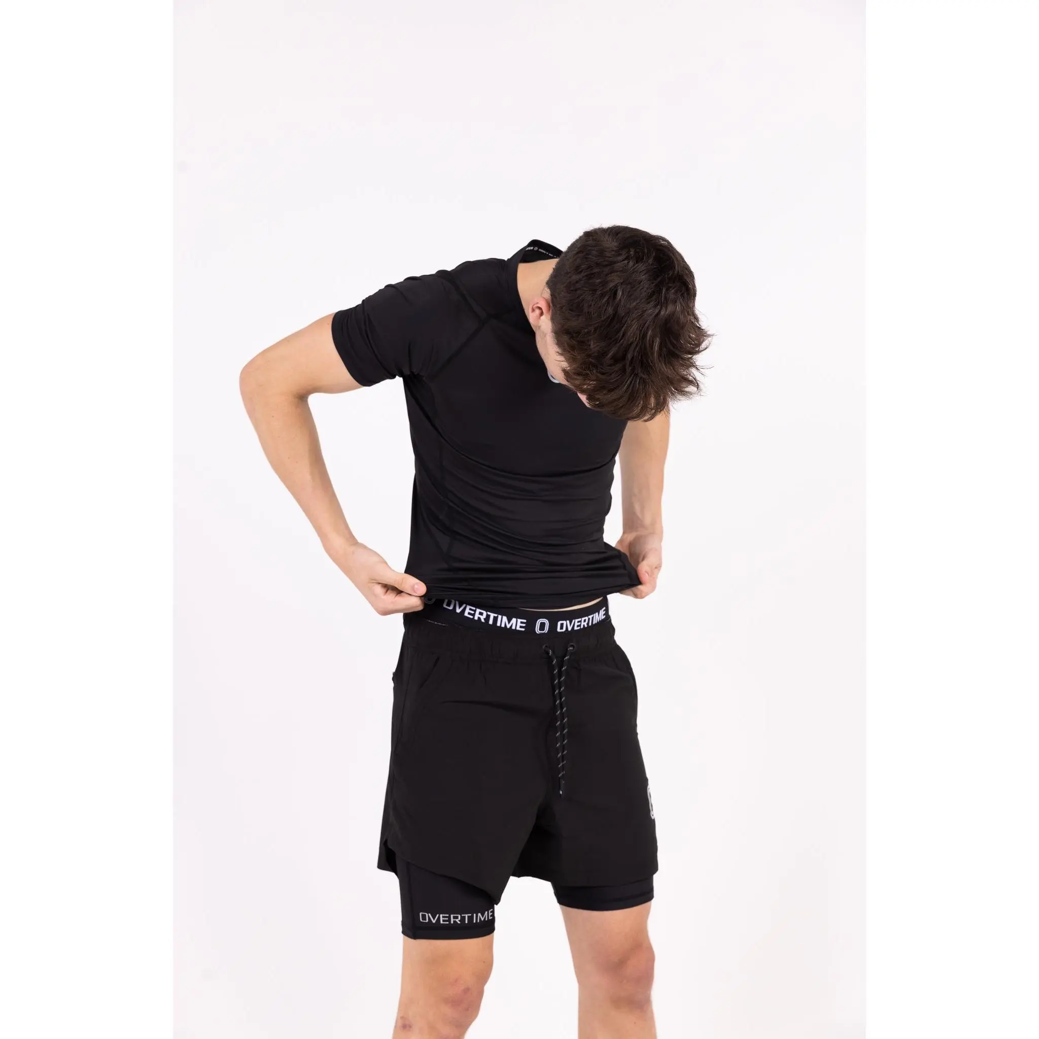 ·OVERTIME spell-out print on the right leg