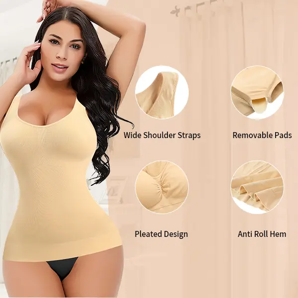 Made of nylon and spandex, this shapewear tank tops for women is breathable, stretchy & soft, and allows for a more snug fit, not digging into your ribs. If you don't want to be too tight, you can go up a size for better fit.