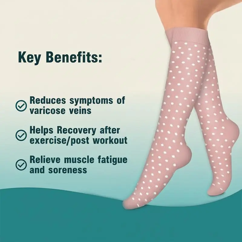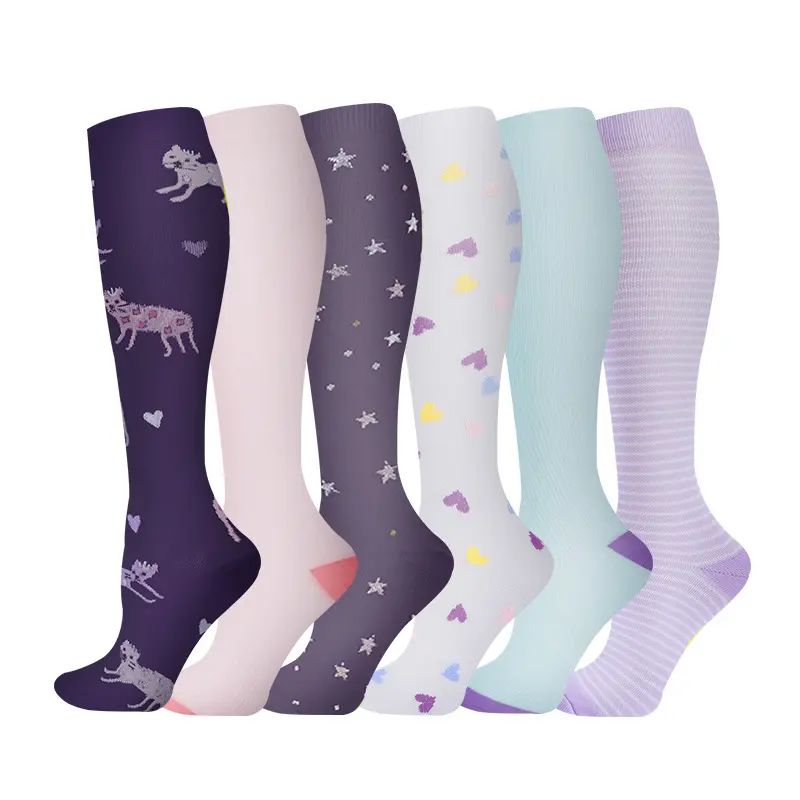 6 pairs of compression calf socks — quick-drying, long-lasting support for running, fitness, and recovery; floral pattern compression knee-high socks with a wide, breathable design; moisture-wicking sports socks for everyday wear