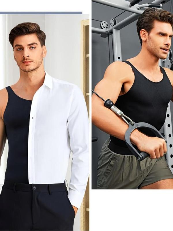 5. Men's Solid Color Compression Vest, Casual Comfortable Breathable Tummy Control Shaper Tank Top, Men's Shapewear Top for Daily Wear, Shaping Top