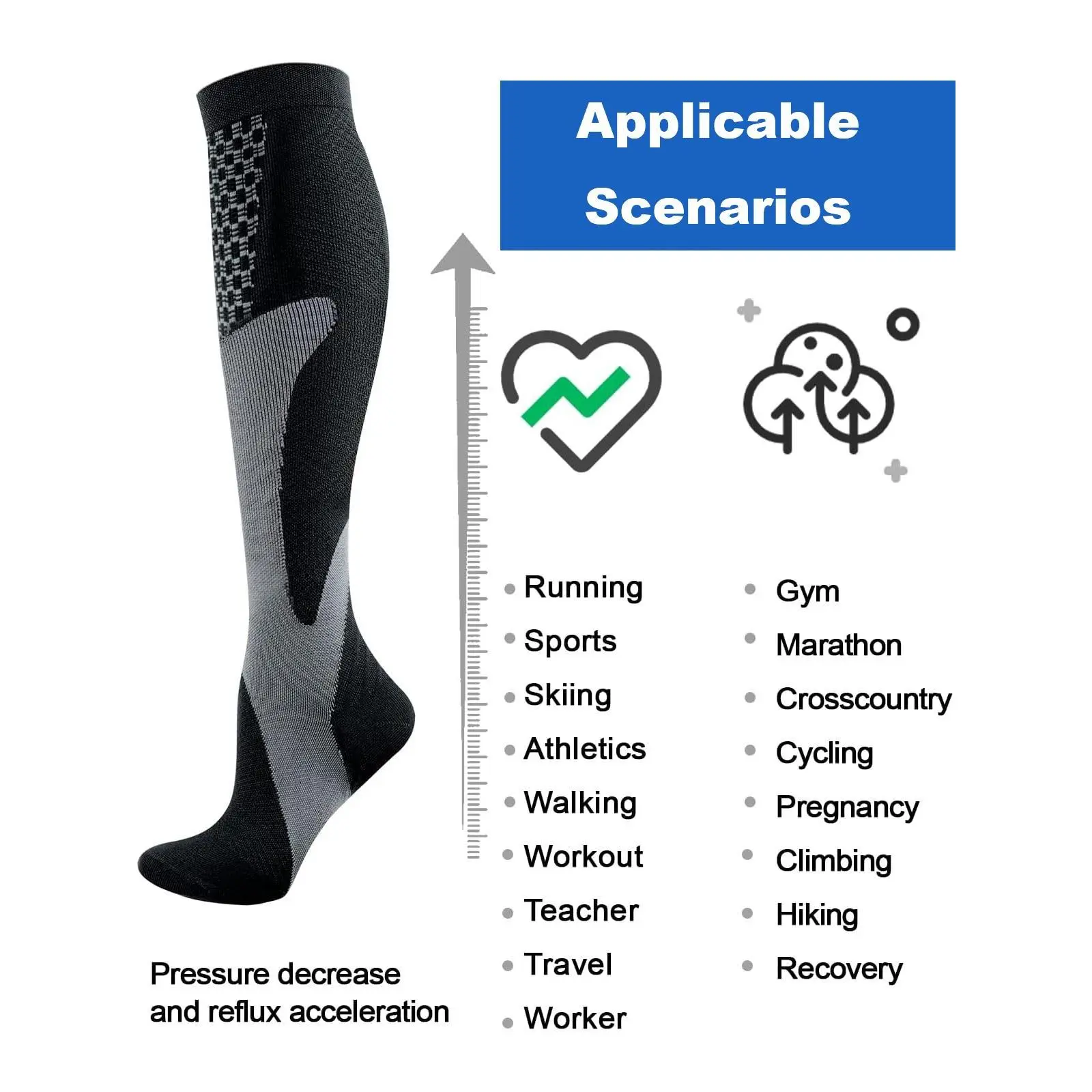 --We adopt the highest standard of producing professional sports socks, improving the air circulation and keeping your feet dry and comfortable all the time. Our compression socks ensure faster restore and protect your feet better.