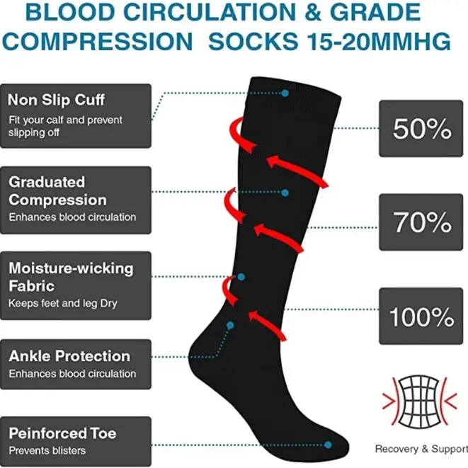 Stay comfortable and supported all day with these compression socks. Designed for everyday wear, workouts, and long hours on your feet, they provide gentle pressure to help improve circulation and reduce leg fatigue.