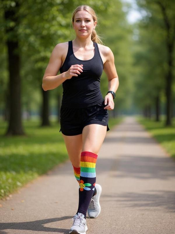 🌈 Marathon Rainbow Smile Knee High Compression Socks
