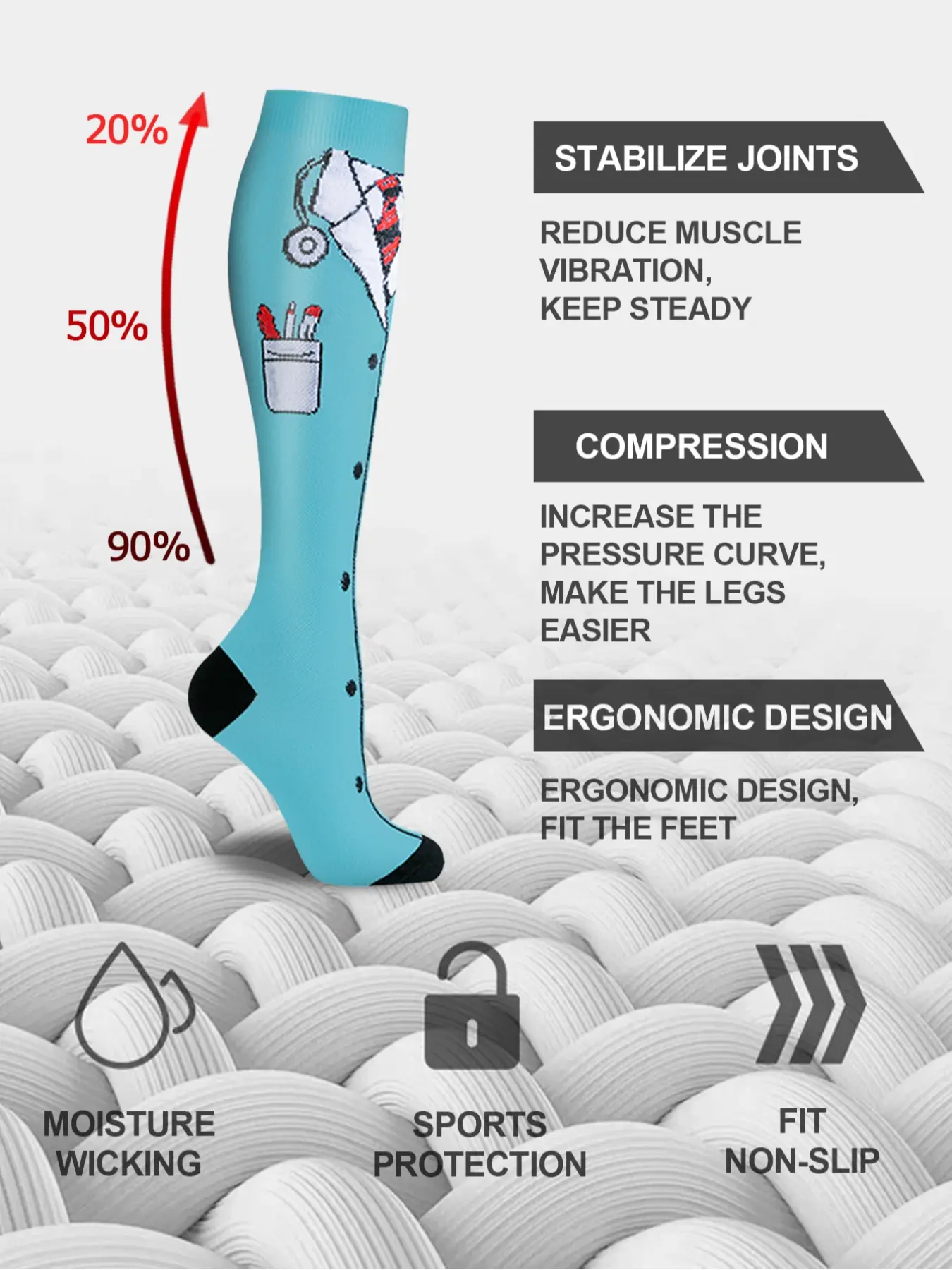 【Knee-high length】: This knee-high design promotes enhanced blood circulation, making it suitable for nurses and travelers seeking support during long hours.