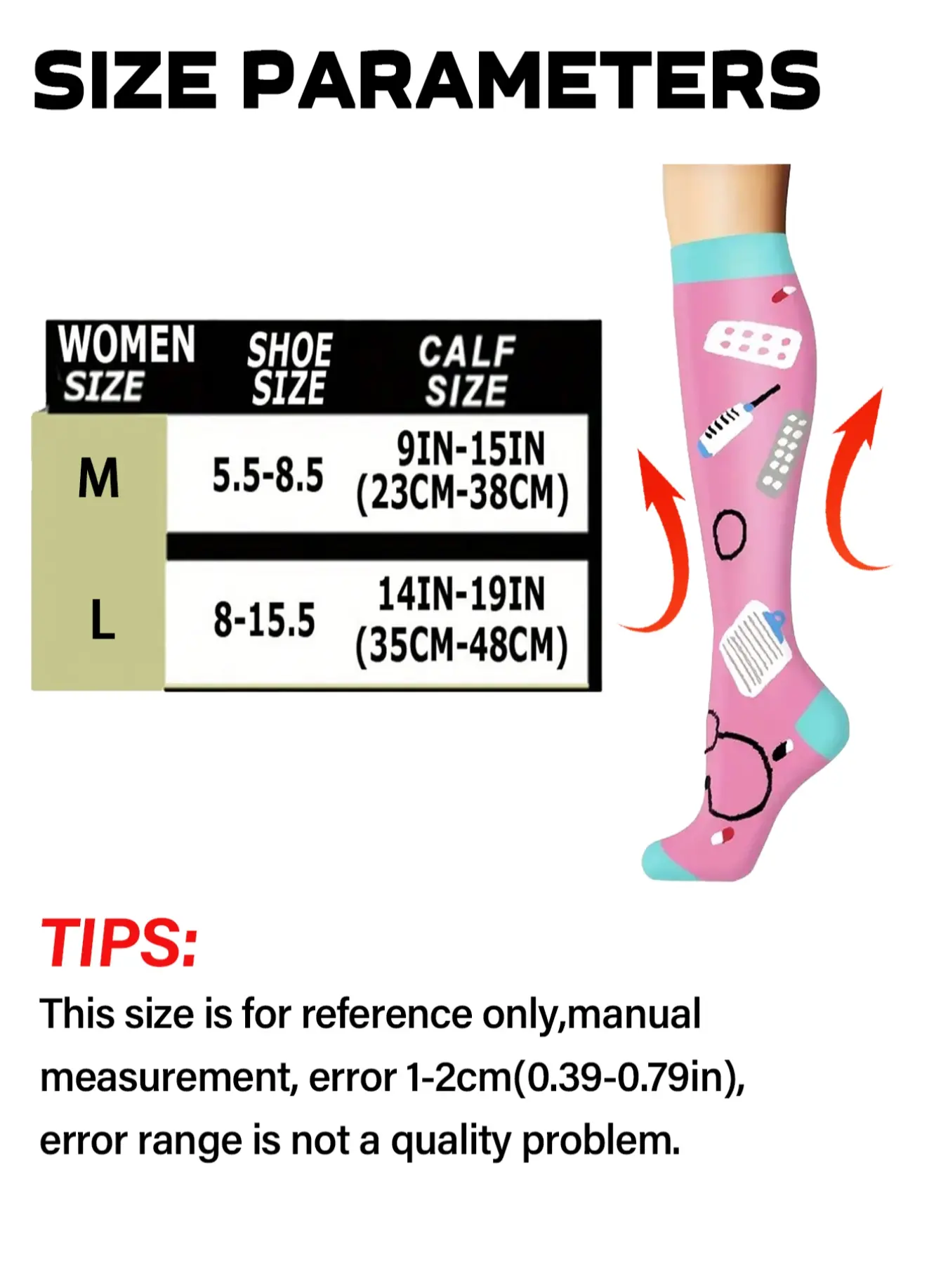 I just received these and they are the cutest compression socks. I am very iffy on socks (tism club) but they are soft. I am about 5’1” and got the L/XL and fit very well. I will be ordering more since I am on my feet all day all week.
