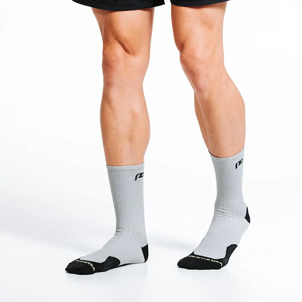 The gold standard of mid-length compression socks, these all-grey PC Racers are perfect for work, play, and travel.