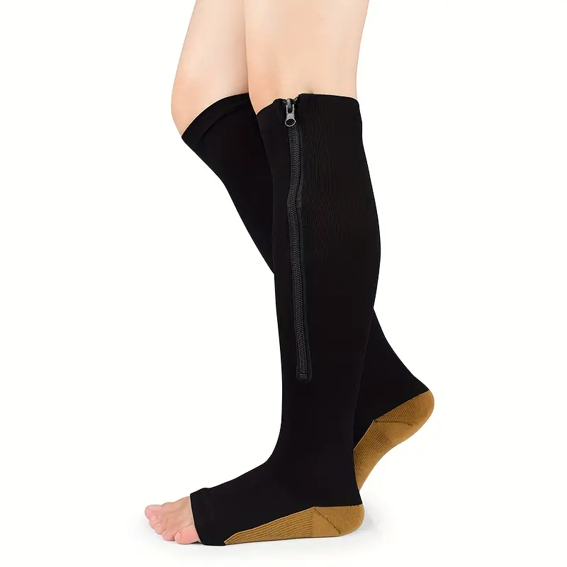 2/6 Pairs Compression Socks Zippered Compression Socks Thigh-High Zipper Toeless Design Compression Stockings | for Men & Women Perfect for Athletes Sports Travel Fitness Nylon Fabric