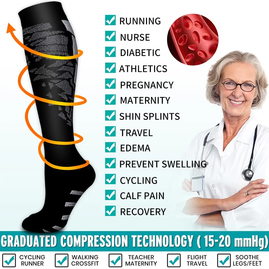 Whether you're hitting the gym, going for a run, or recovering after a long day, these plastic calf compression socks deliver arch support and muscle stabilization to enhance performance. A must-have for athletes, nurses, travelers, and fitness lovers!