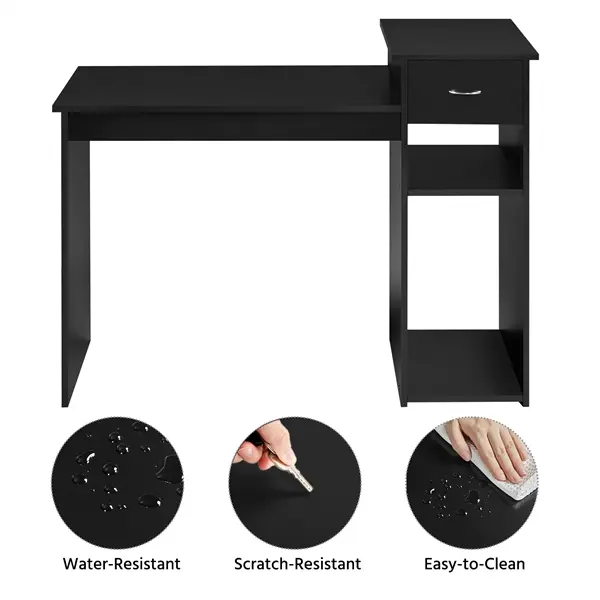4. Make cleaning a breeze: Spilt liquid? Never mind! Covered with a waterproof veneer, this computer desk with a drawer can be easily cleaned with a damp cloth and mild cleanser.