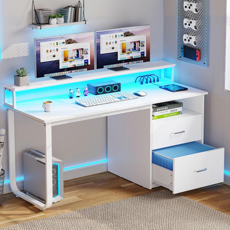 Smart LED Light Strips: Our computer desk with power outlets features a beautiful RGB LED light strip, flexibly controlled by a phone app or remote control, and you can customize any color you like via app. Also, it has a variety of modes like music sync, timer functions and built-in mic to enhance the mood and inspire creativity while working or studying.