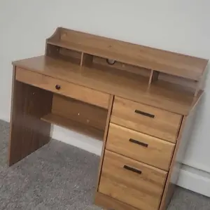 ·【Vintage Style Desk】: This home office desk with drawers for small spaces with a vintage wood look and classic wood grain effect veneer is ideal for home office or small space use. home office desk with drawers enhances the appearance and brightens up your room, enhances your overall quality of life, and adds color to study, office, bedroom.