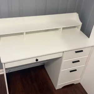 ·【Computer Desk for small space】: Dimensions: 20.5"D x 44"W x 38.5"H.This white desk is perfect for small Spaces without taking up too much space, making maximum use of space. The desktop hutch can store your books, monitors, and decorations without taking up too much space. This student desk is suitable for you to use at home and work in a bedroom or small space.