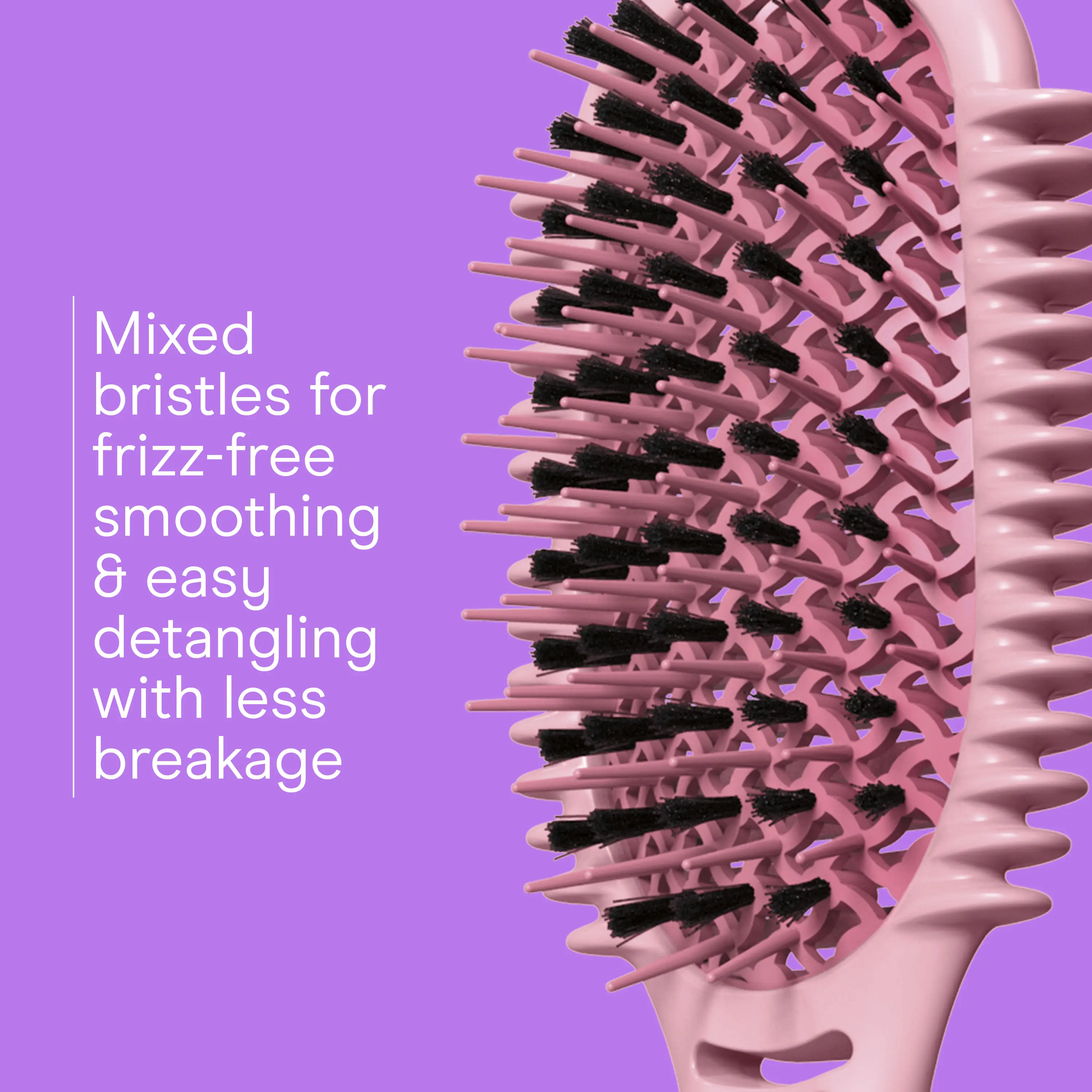 Mixed bristles glide through hair to minimize snagging and breakage—reducing frizz while leaving curls smooth, shiny, and healthy-looking.