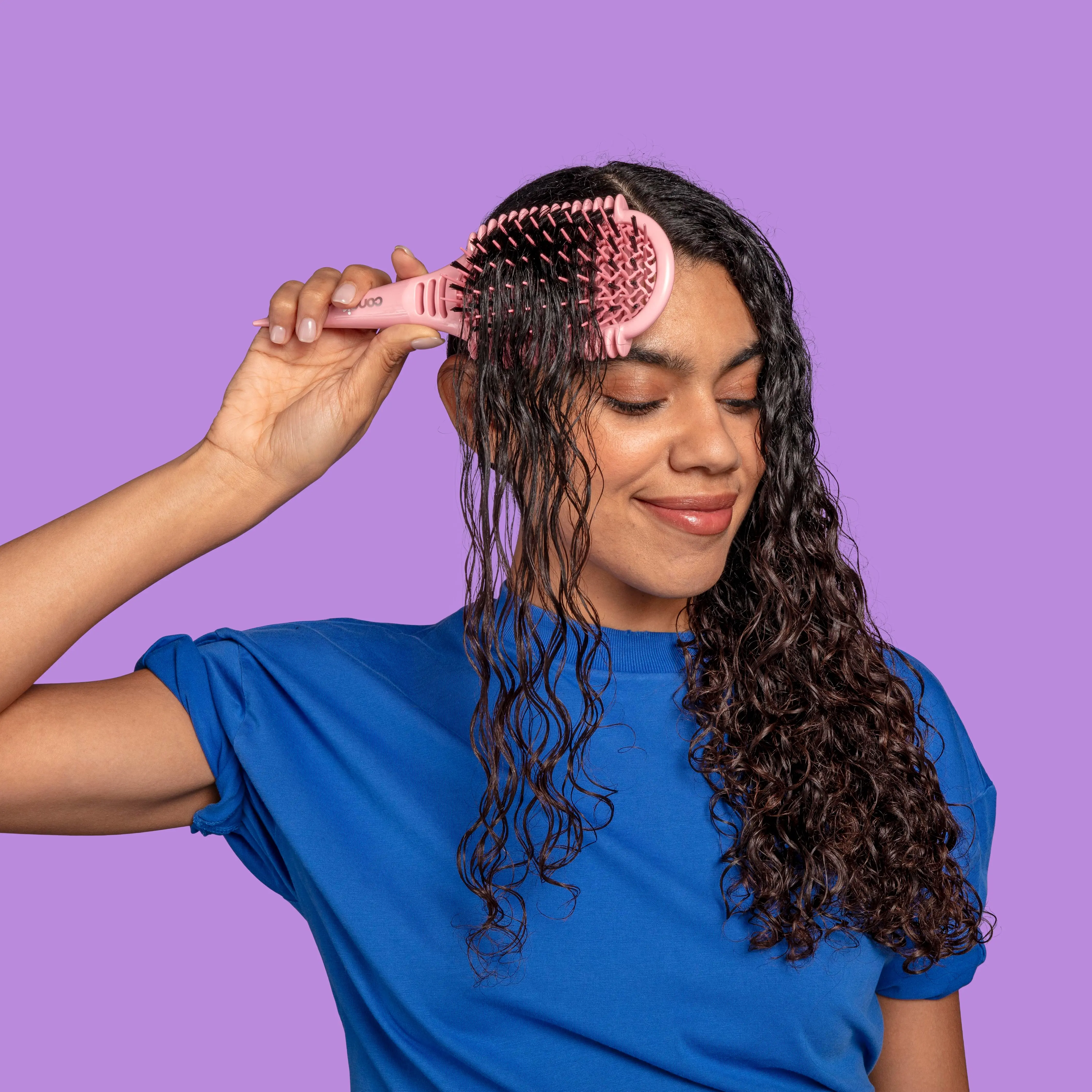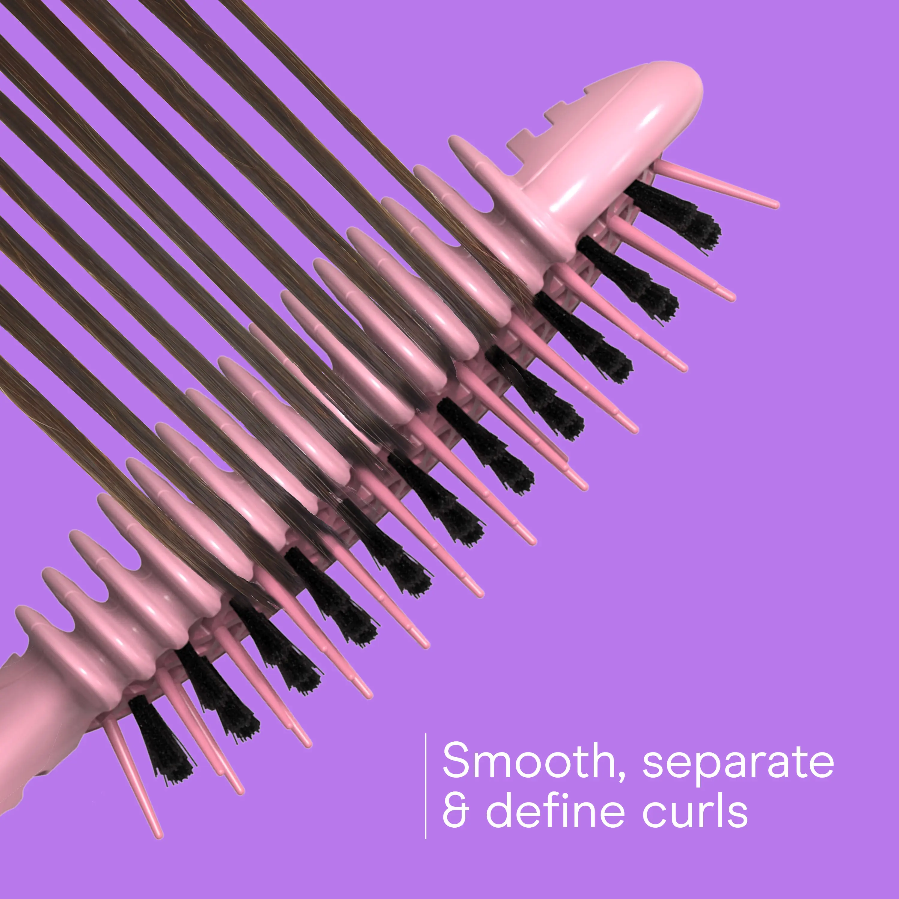 Specifically designed for longer hair with tight curl patterns, this curl definition brush gently separates and smooths strands to enhance shape while keeping curls bouncy, defined, and full of movement.