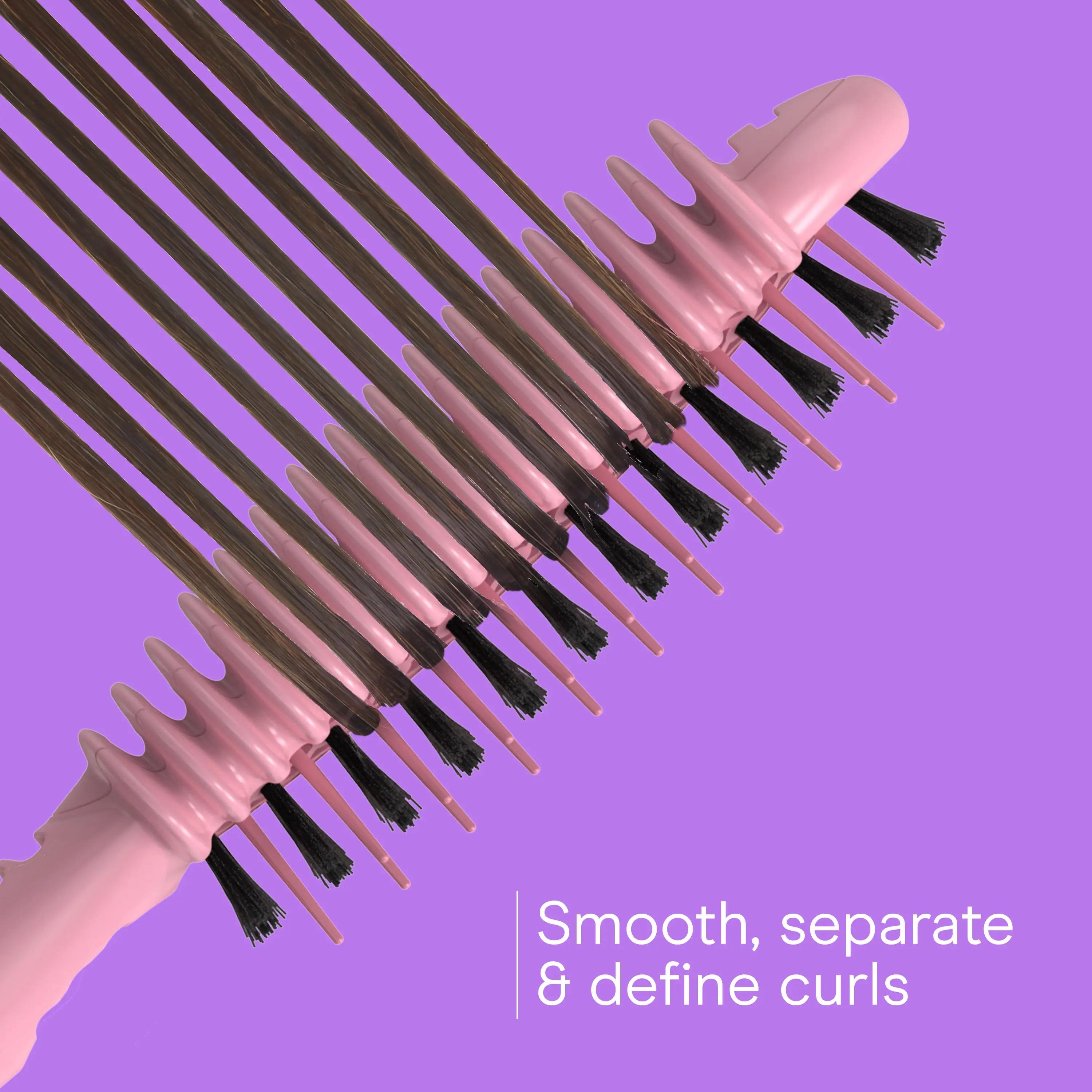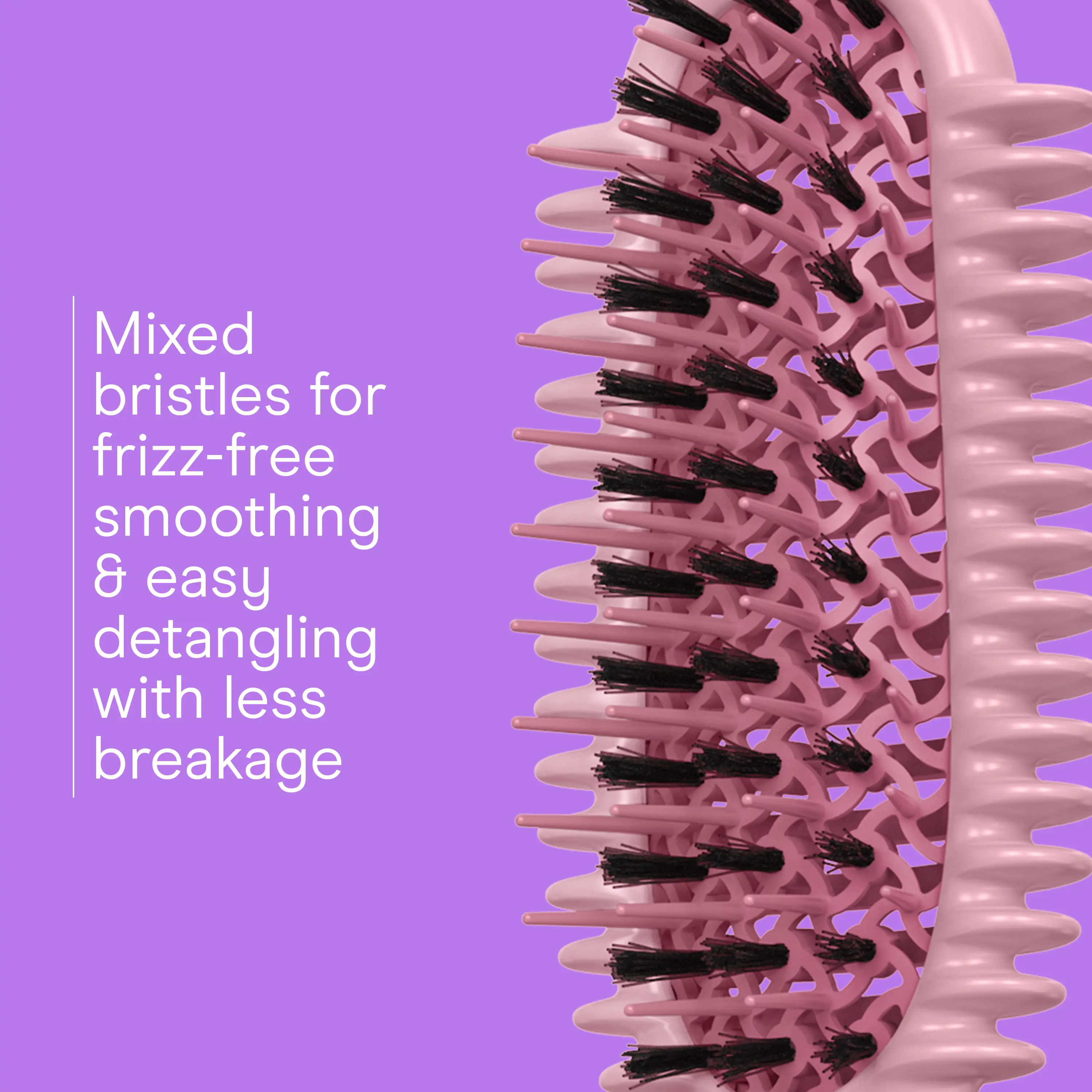 Mixed bristles glide through curls to minimize snagging and breakage, helping tame frizz while leaving hair smooth, shiny, and healthy-looking.