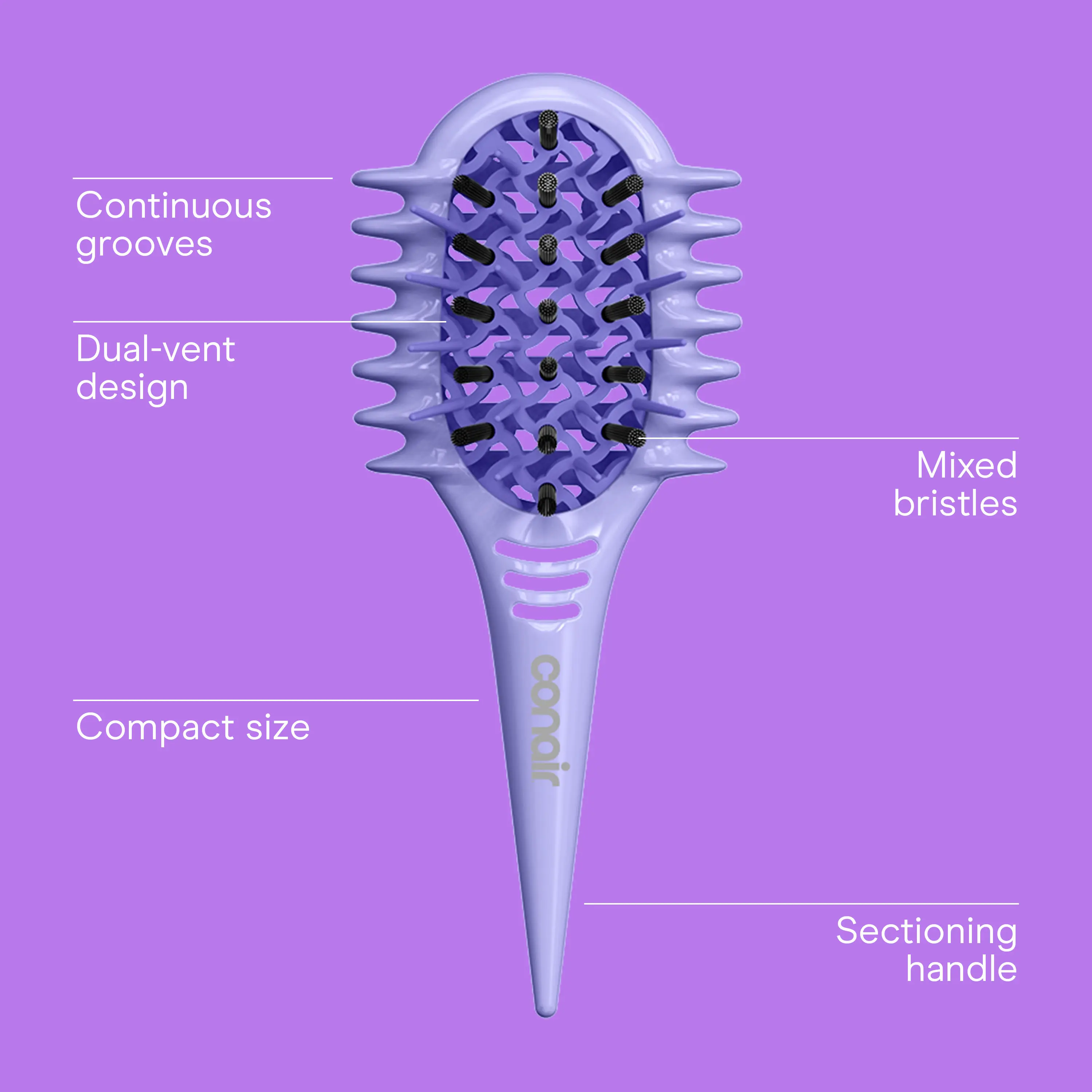 • Continuous grooves smooth and separate curls for better definition