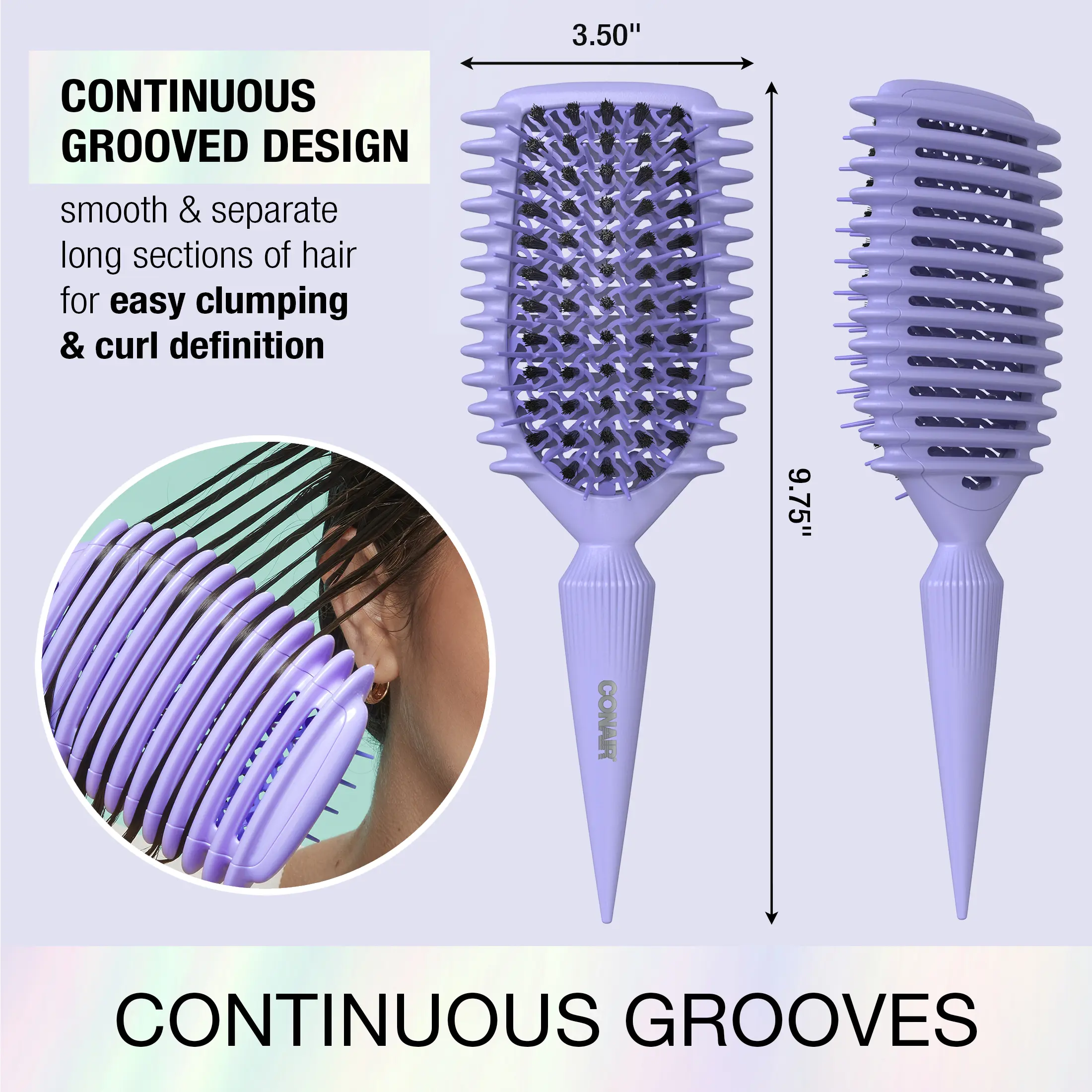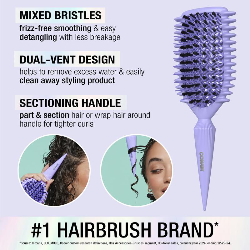 The Conair Curl Define Pro Detangle Brush ensures smooth, separated, and defined curls. Its continuous grooved design allows hair to glide through effortlessly. Mixed bristles provide smooth detangling and frizz control. Enjoy healthier-looking curls with less breakage. Perfect for mixed hair types.
