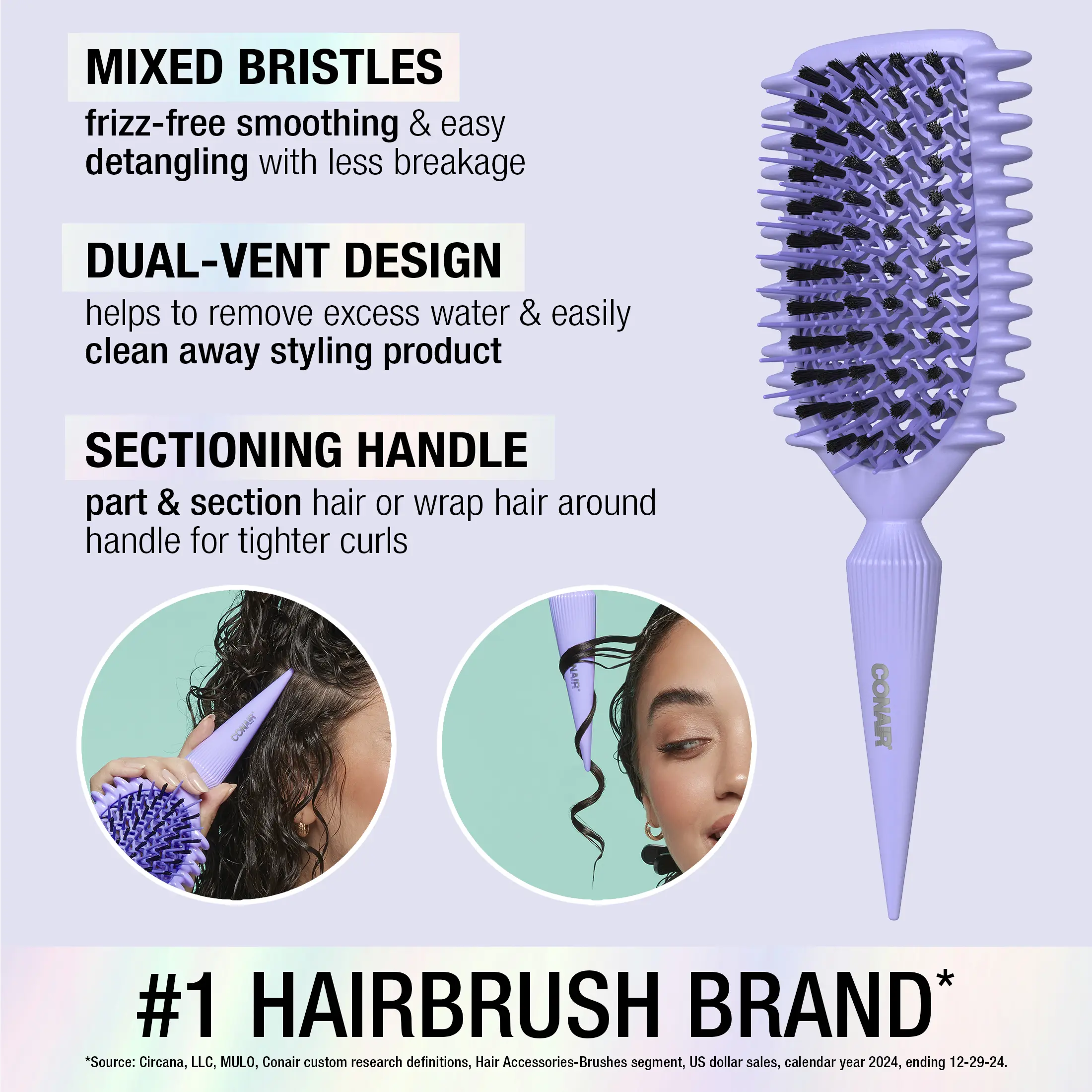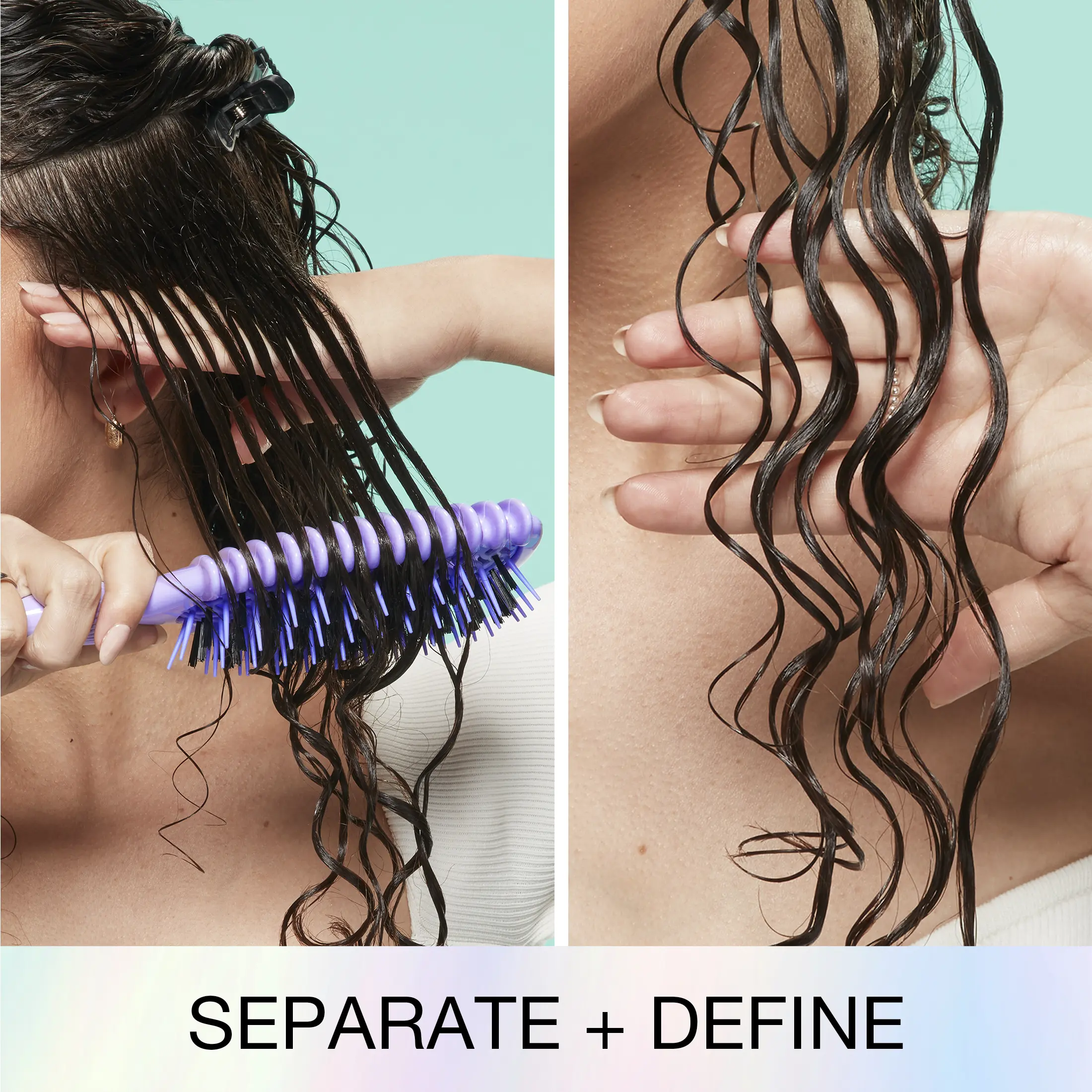 The dual-vent design removes excess water and cleans away product. For definition, place the brush under a section of wet or damp hair. Brush away from the scalp, turning the brush downward. Use the tip of the sectioning handle for precision.