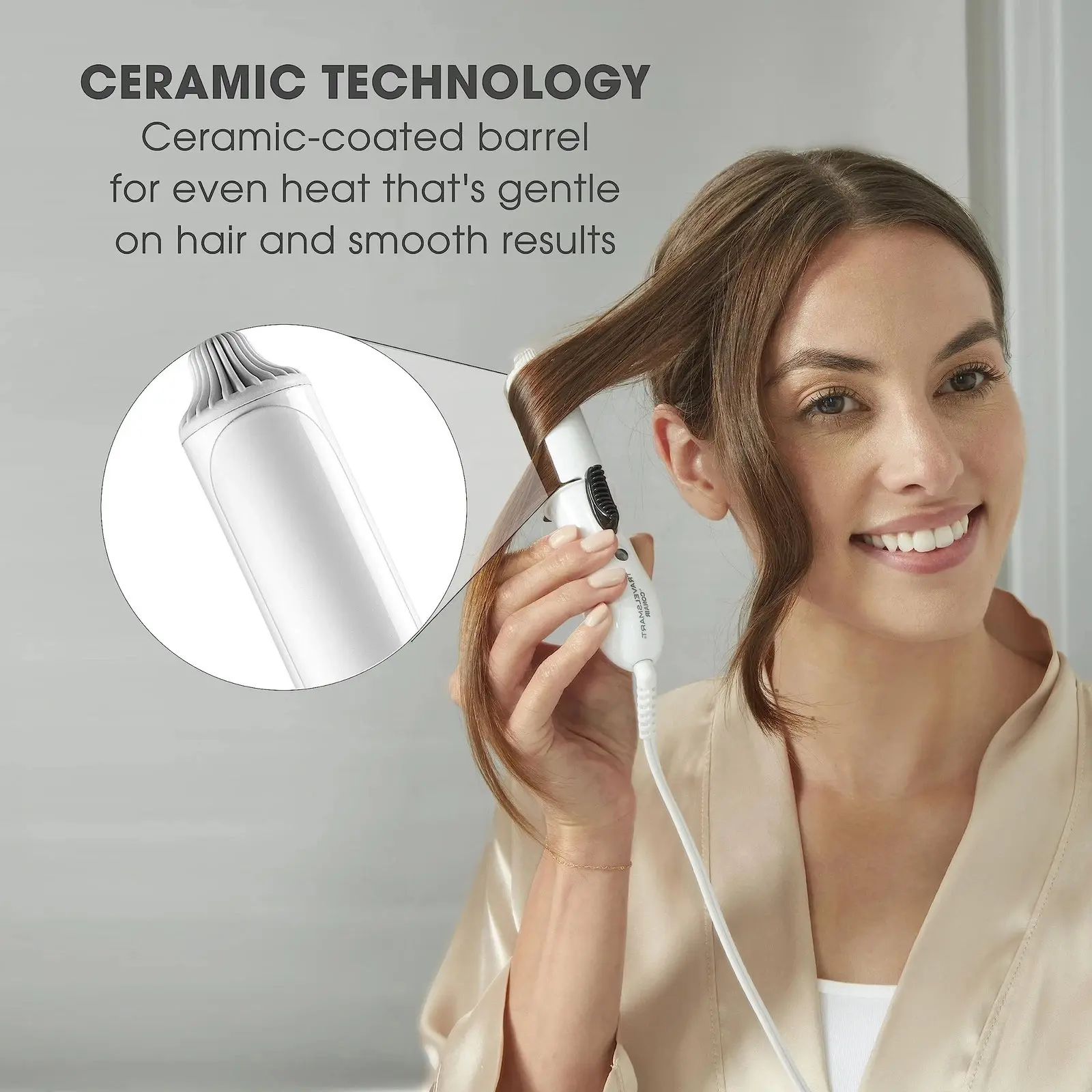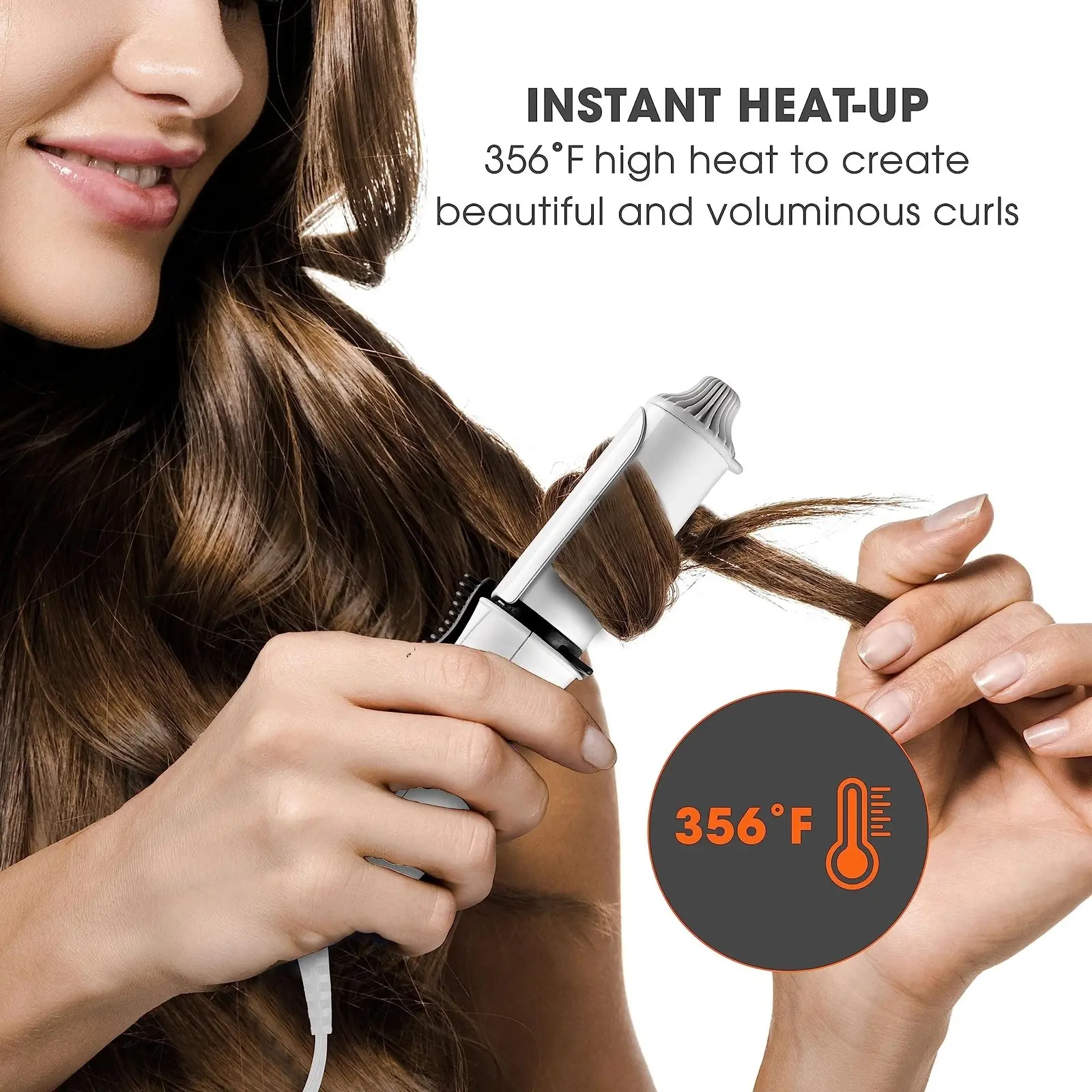 The ceramic-coated barrel heats up to 356°F in about 30 seconds, delivering even heat for smooth curls and waves. Not intended for full-length, full-head styling on long hair. Choose a full-size Conair curling iron for everyday use.